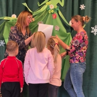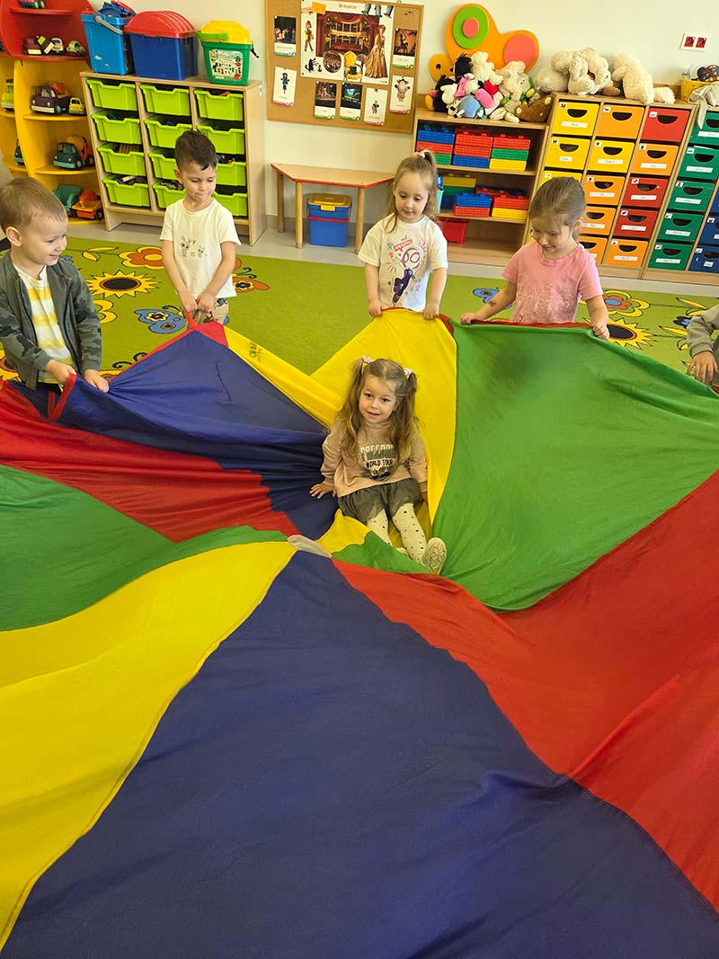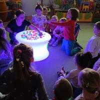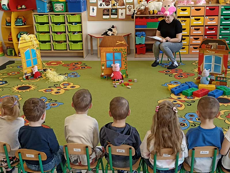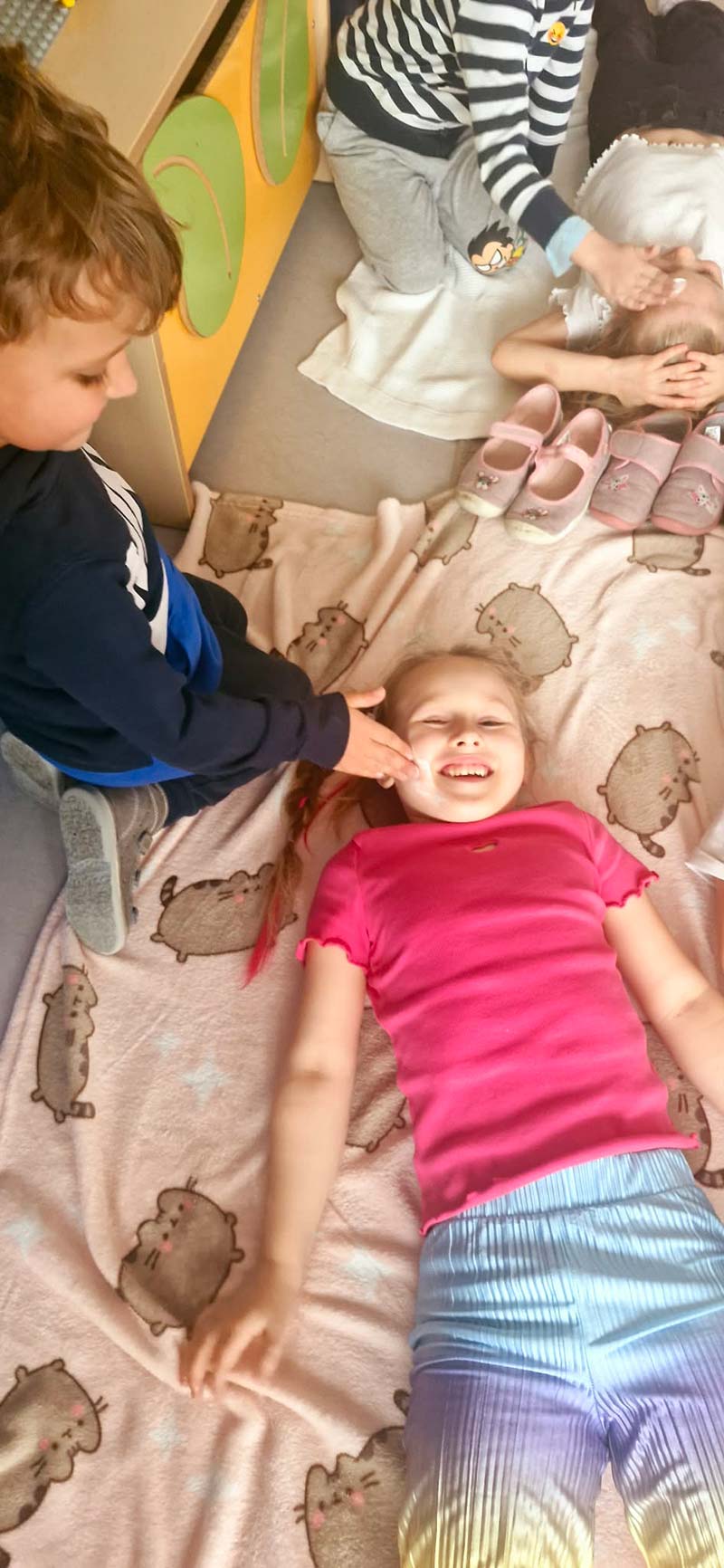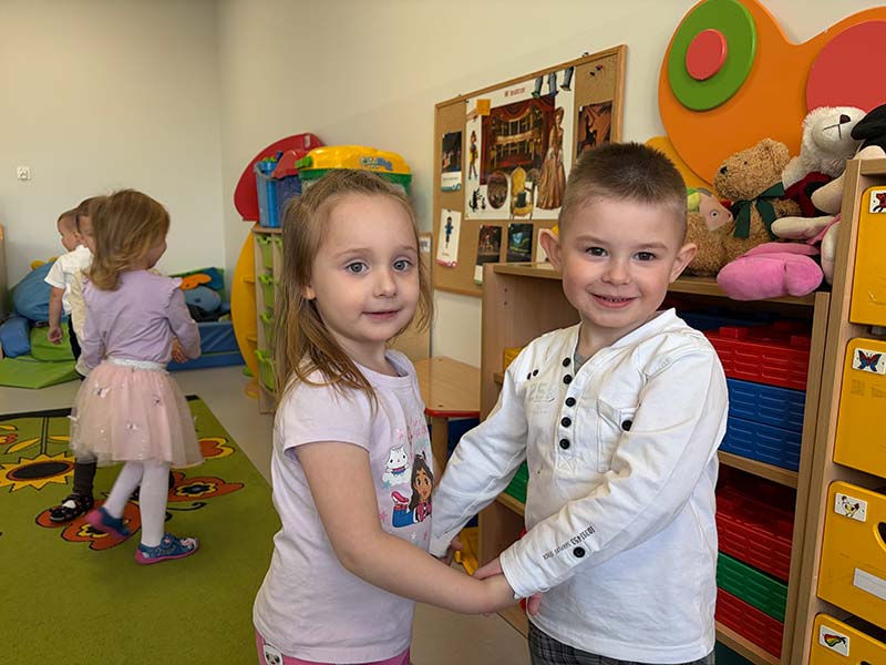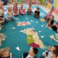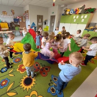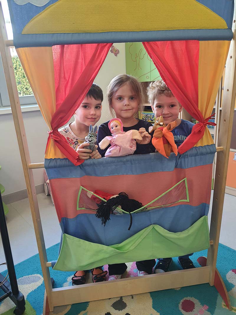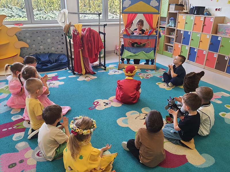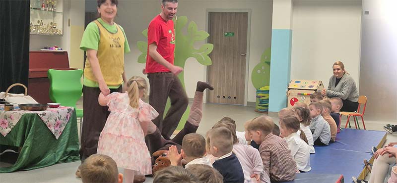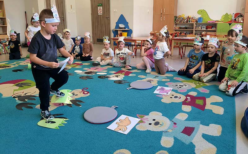 Dzieci uczestniczyły w zabawach rozwijających kreatywność i empatię. Odgrywały rolę i sceny z klasycznych bajek. Chętnie brały udział w tańcach i zabawach ruchowych.