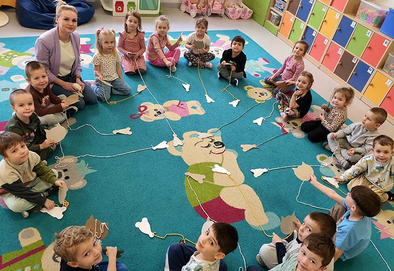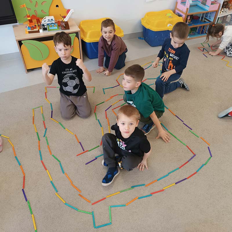 - uczyły się współpracy, tworząc wspólną, dużą kompozycję.