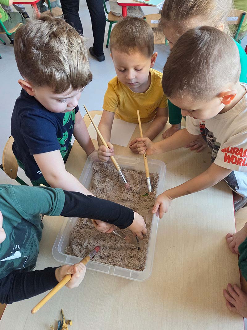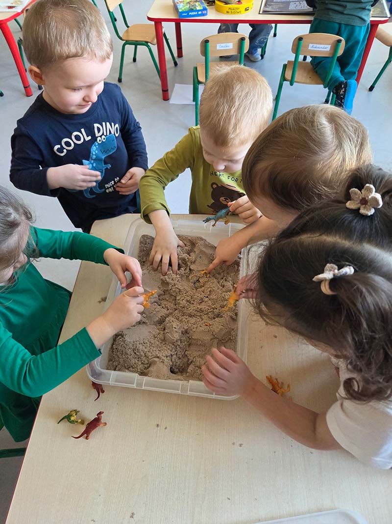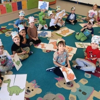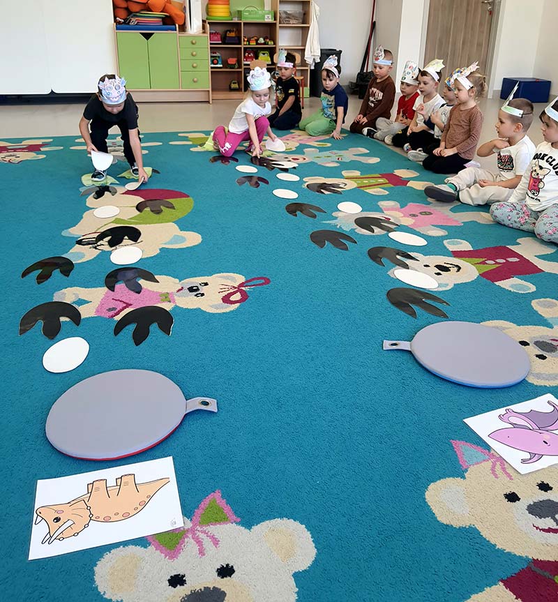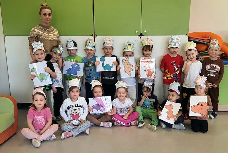 tworzyły tory przeszkód, poszukiwały śladów dinozaurow i skamieniałości. Kreatywnie tworzyły dinozaurowe opaski na głowy, poznając przy tym fascynujący świat prehistorycznych gadów.