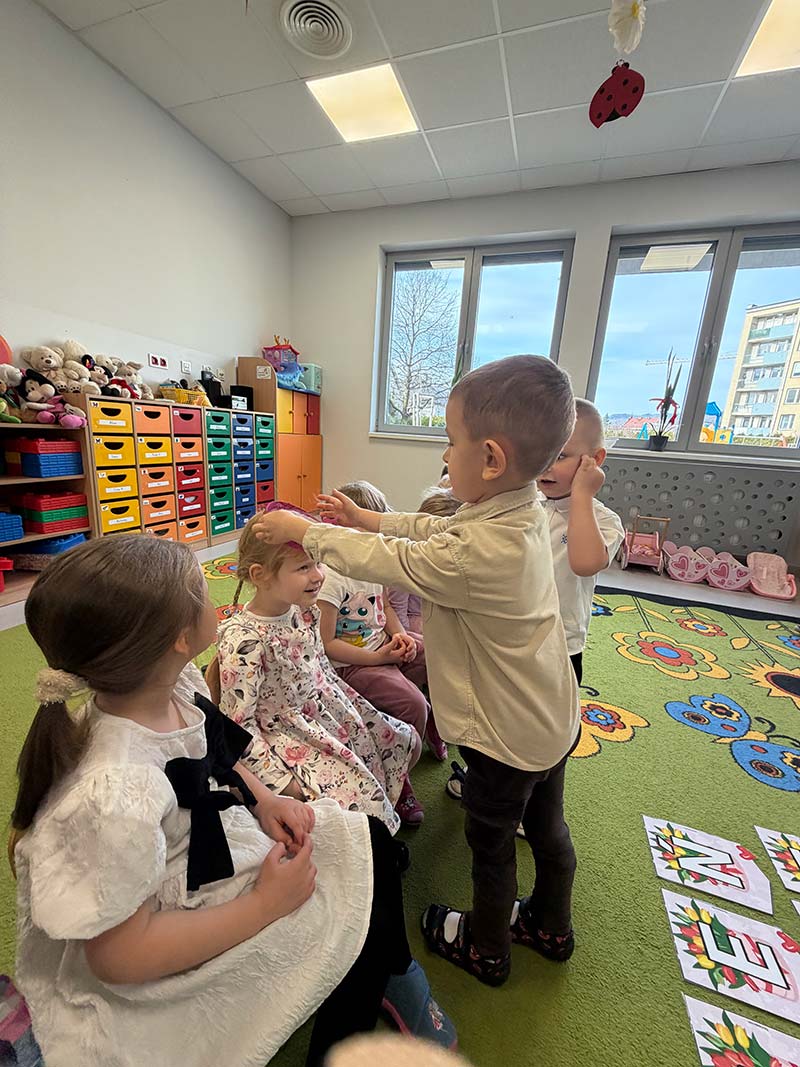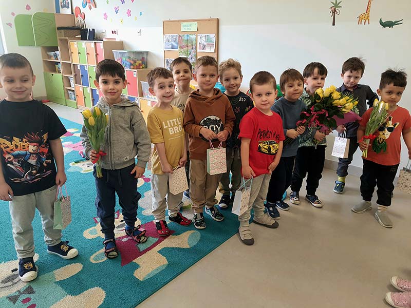 Dzień Kobiet to radosne święto skupione na szacunku, życzeniach i wspólnej zabawie. Chłopcy wcielają się w rolę dżentelmenów, wręczając koleżankom i paniom drobne upominki. W tym dniu dzieci uczestniczyły w tańcach, śpiewach i zabawach ruchowych.