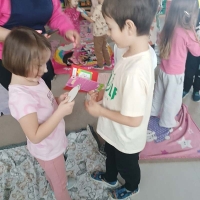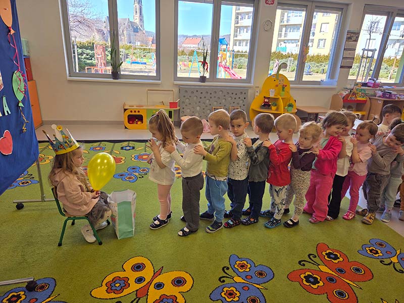 Tego dnia dziewczynki otrzymały drobne upominki oraz piękne laurki. Chłopcy złożyli im serdeczne życzenia, zaśpiewaliśmy wspólnie piosenkę i zrobiliśmy pamiątkowe zdjęcia. Nie zabrakło także wspólnych zabaw i tańców przy muzyce.