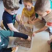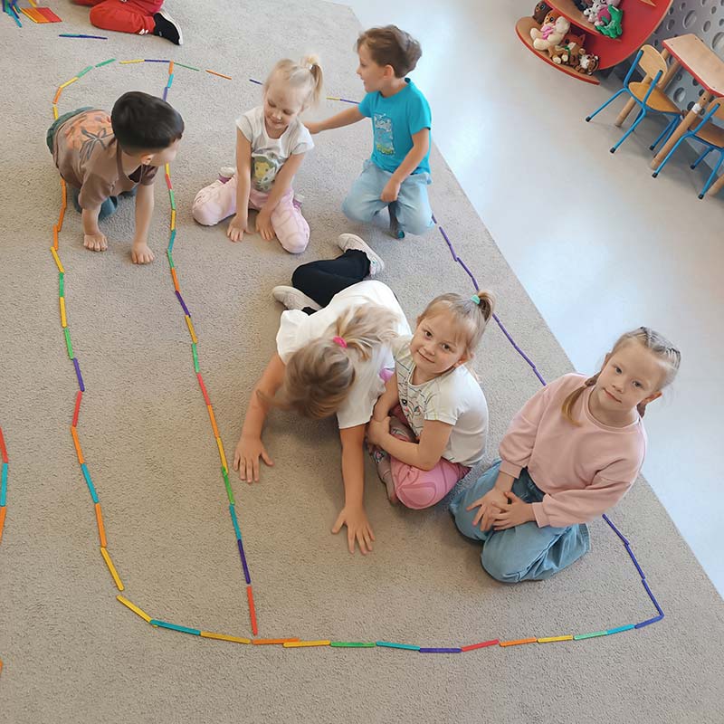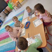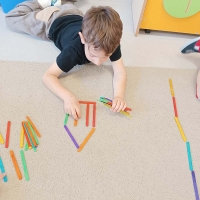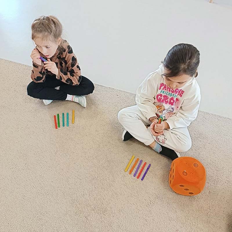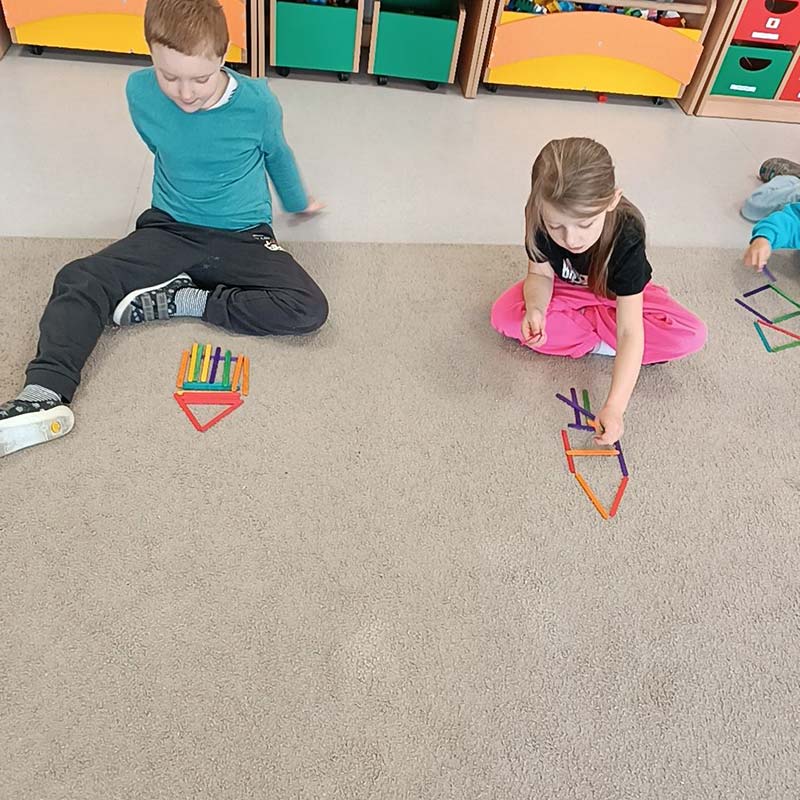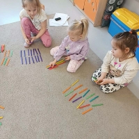 Matematyczne zabawy z wykorzystaniem kolorowych patyczków u Motylków.