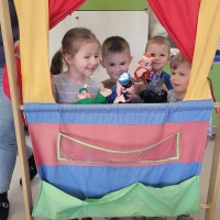 Teatralny tydzień w Biedronkach. Dzieci bardzo chętnie wcielają się w różne role, naśladują postacie z bajek, zwierzęta czy osoby z najbliższego otoczenia. Zabawy teatralne rozwijają wyobraźnię, kreatywność oraz umiejętności językowe dzieci.