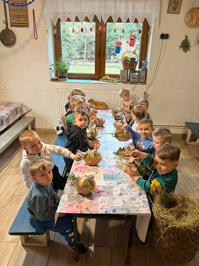 Podczas pobytu uczestnicy wycieczki brali udział w warsztatach wielkanocnych, gdzie wykonali koszyczek z kurczaczkiem.