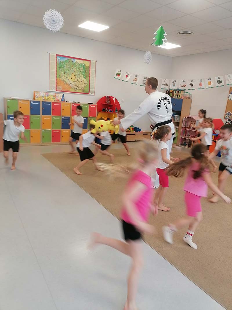 Zajęcia z trenerem Taekwondo to ćwiczenia rozwijające sprawność i wspaniała zabawa. Oprócz specjalnej techniki walki, taekwondo ma szereg założeń, których muszą przestrzegać jego praktykujący. Kładzie duży nacisk na bezpieczeństwo i szacunek dla kolegów. Jako sport kształtuje dyscyplinę i zapewnia dziecku dobry rozwój fizyczny poprzez zwiększenie elastyczności i siły mięśni oraz wytrzymałości sercowo-naczyniowej.