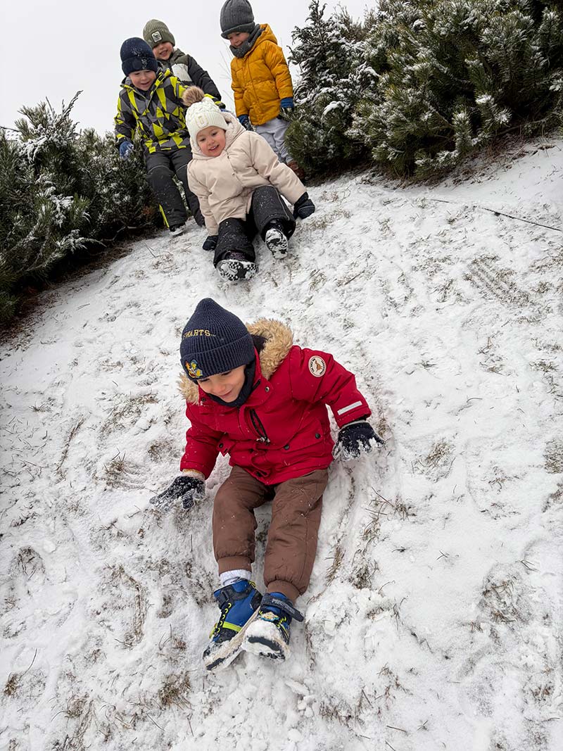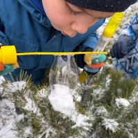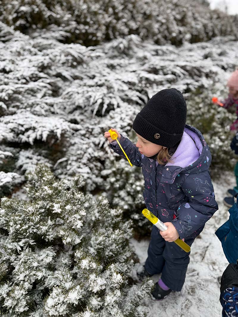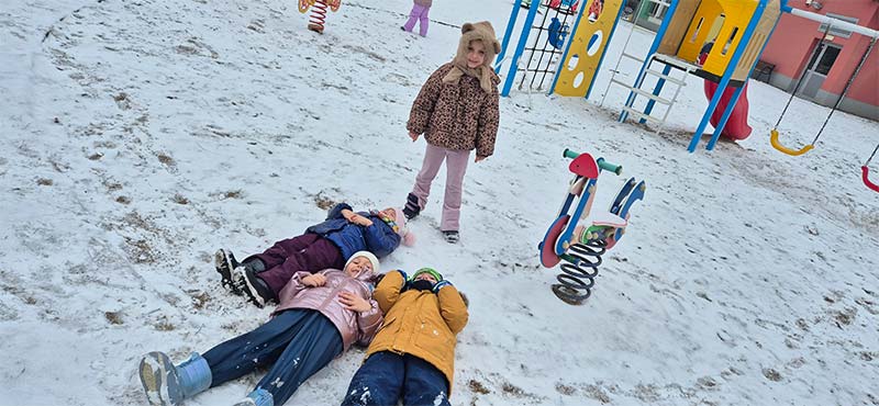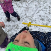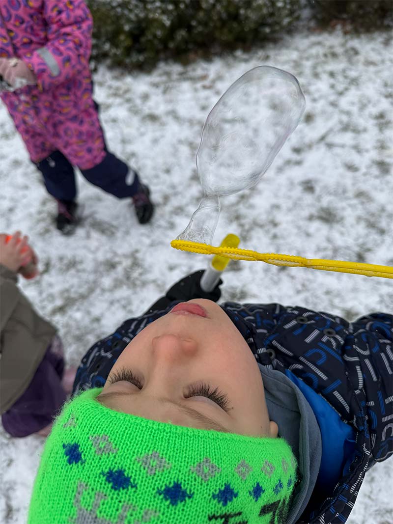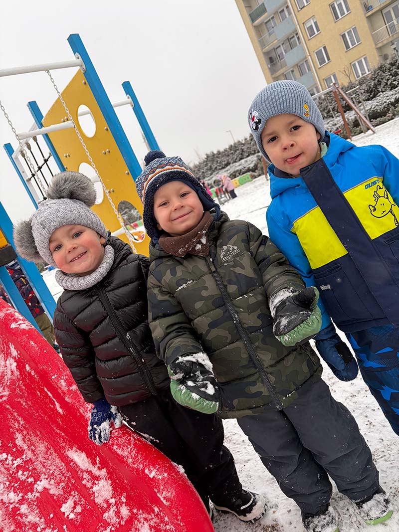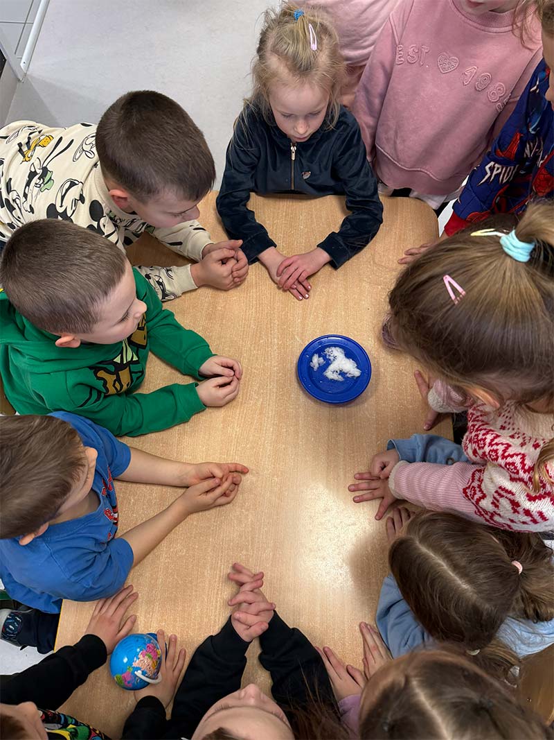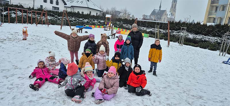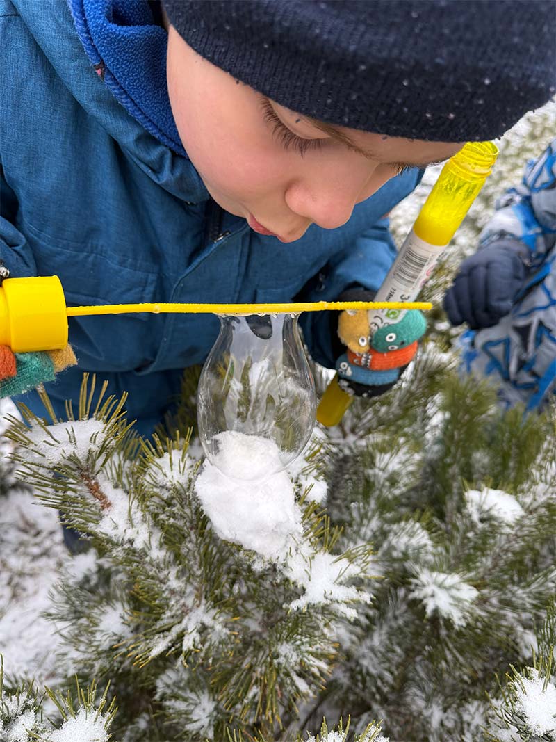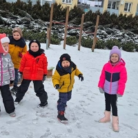 Podczas zimowych zabaw dzieci odkrywały tajemnice przyrody. Obserwowały, jak śnieg w cieple topnieje i zmienia się w wodę, a także jak bańki mydlane na mrozie zamarzają, tworząc niezwykłe lodowe wzory. Była to ciekawa lekcja przez doświadczanie i obserwację.