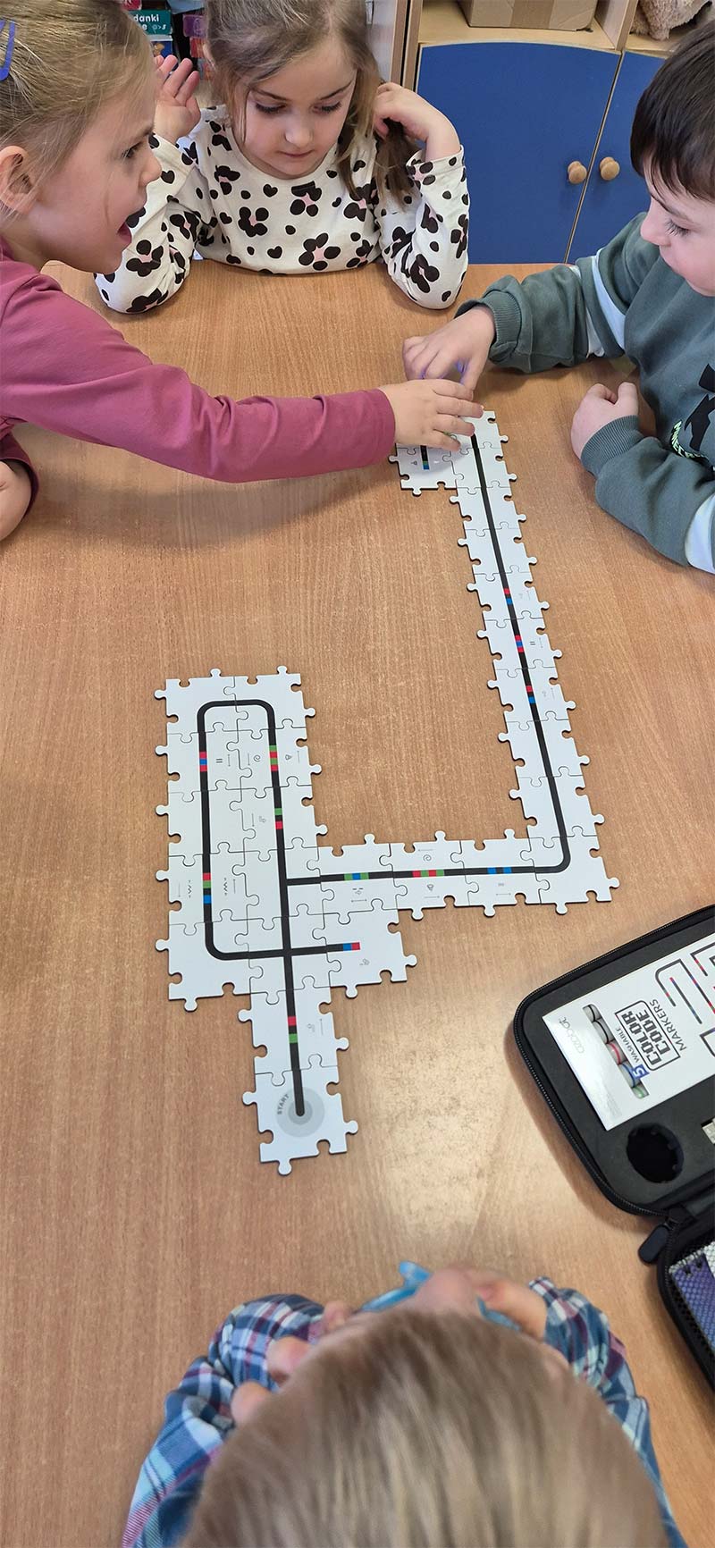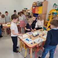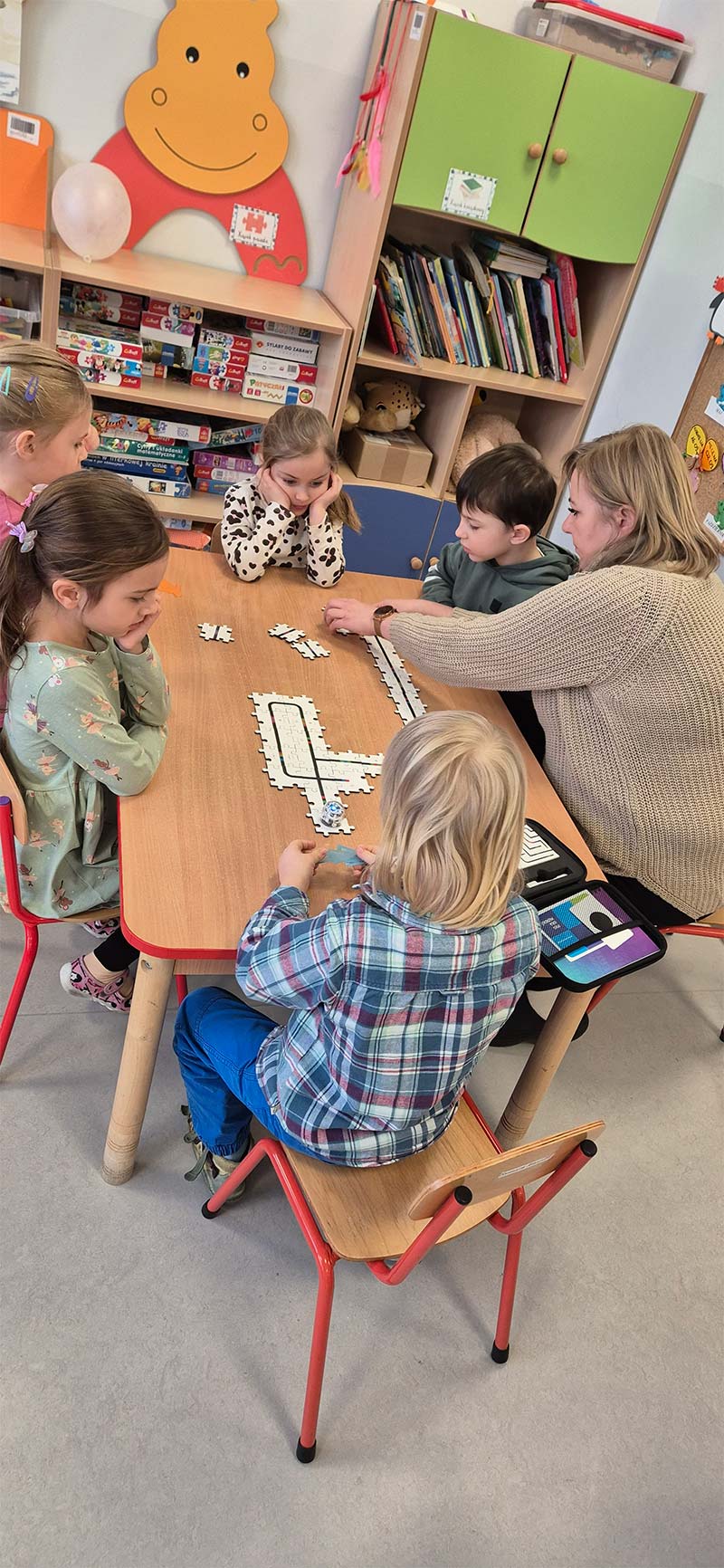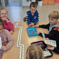 Podczas ferii nie zwalniamy tempa. Dzieci z grupy Jeżyki uwielbiają programować i pracować z robotem Ozobot.