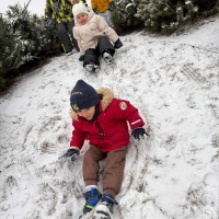 Dzieci z grupy Jeżyki i Smerfy podczas ferii korzystają z zimowej aury, wspólne zimowe zabawy sprzyjają integracji dzieci.