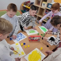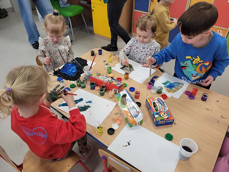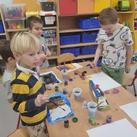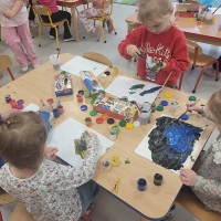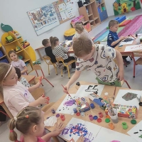 A tak wyglądał Dzień Otwartych Drzwi w sali Krasnoludków. Bawiliśmy się farbkami robiąc kleksy, odbijając rączki i malując pędzelkami oraz paluszkami. Dzieci wykazały się niezwykłą swobodą i kreatywnością.