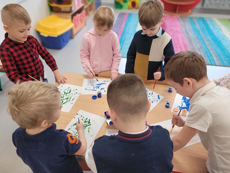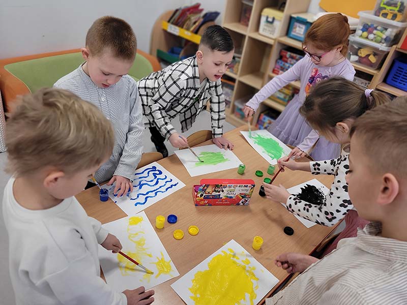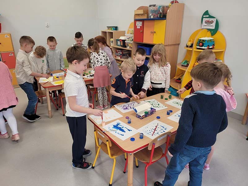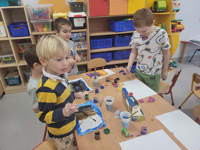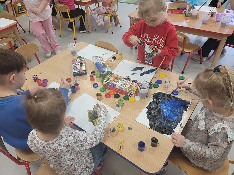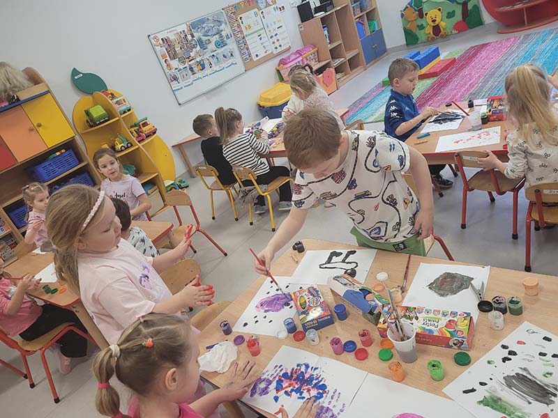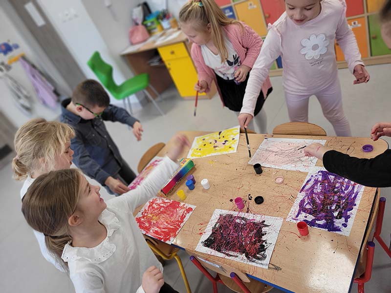 Zabawa sensoryczna "Malowanie tańcem" do muzyki Vivaldiego "Cztery pory roku" w grupie Krasnoludków, która pobudziła dzieci do ekspresji artystycznej.