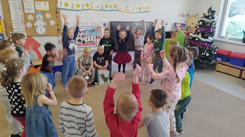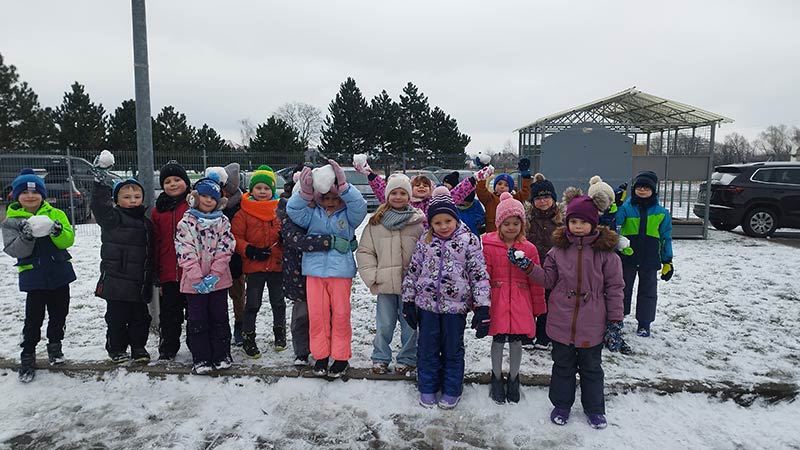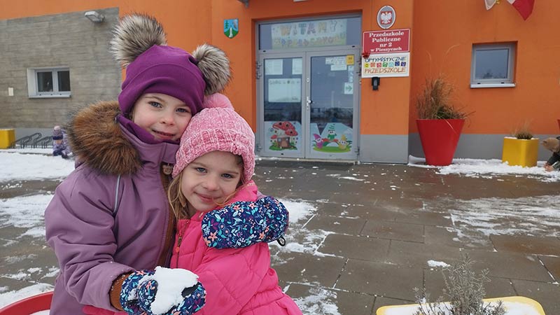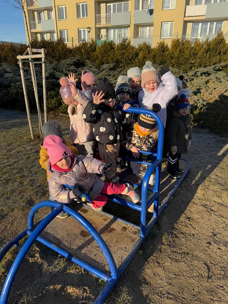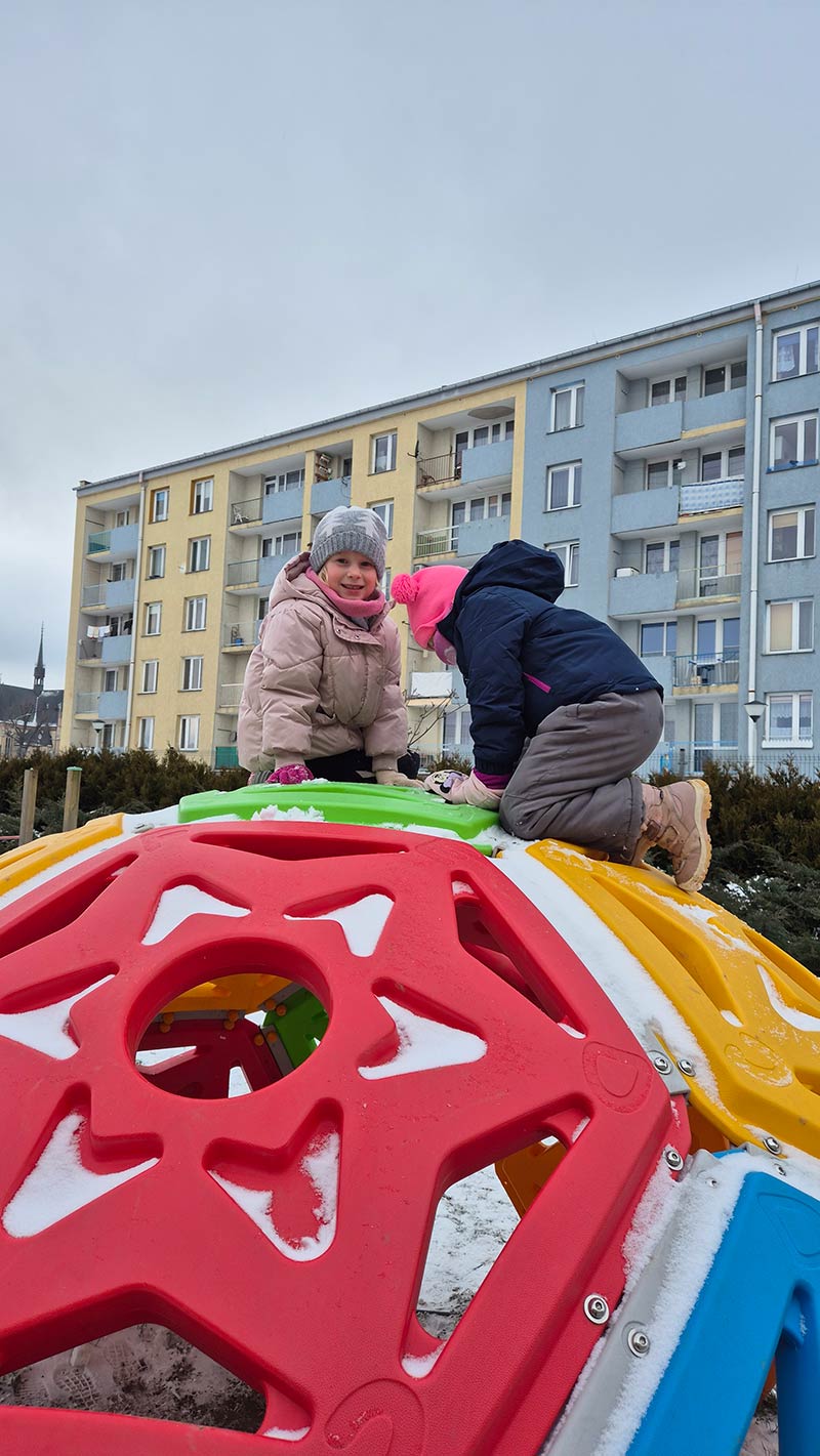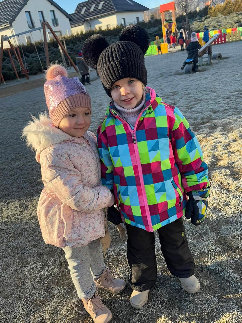 Zimowe zabawy na przedszkolnym podwórku są idealne na spędzenie aktywnie czasu.
