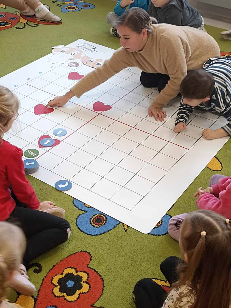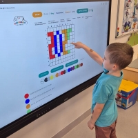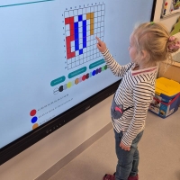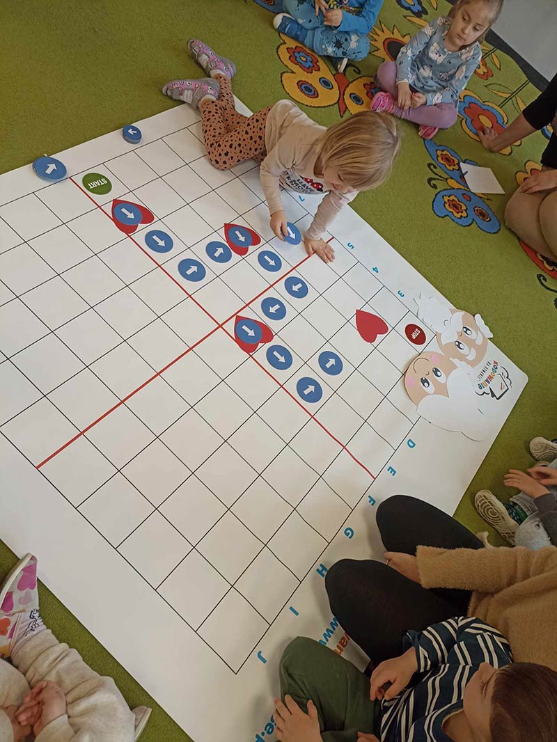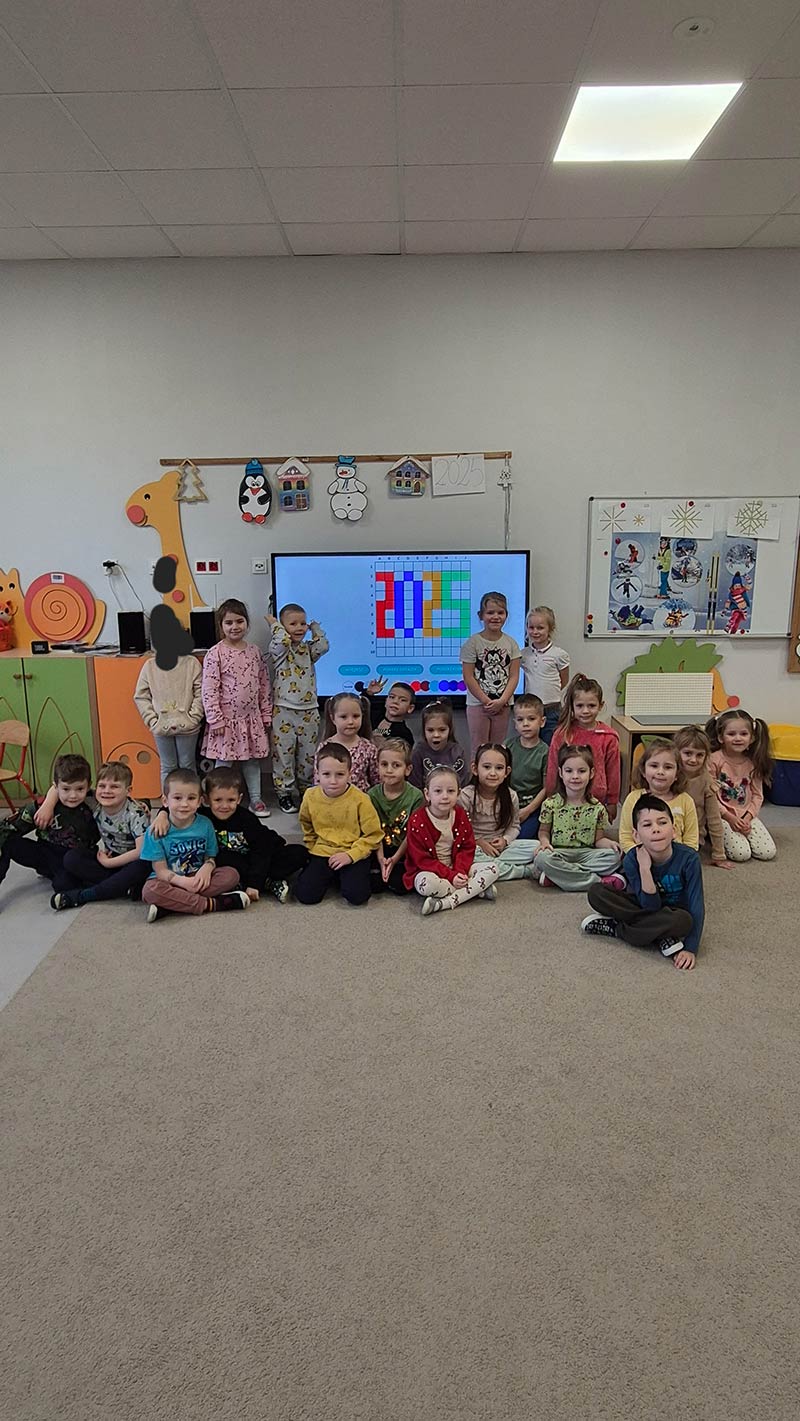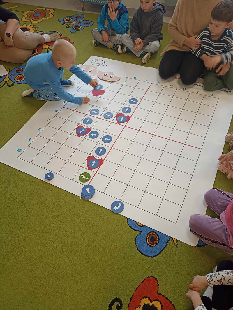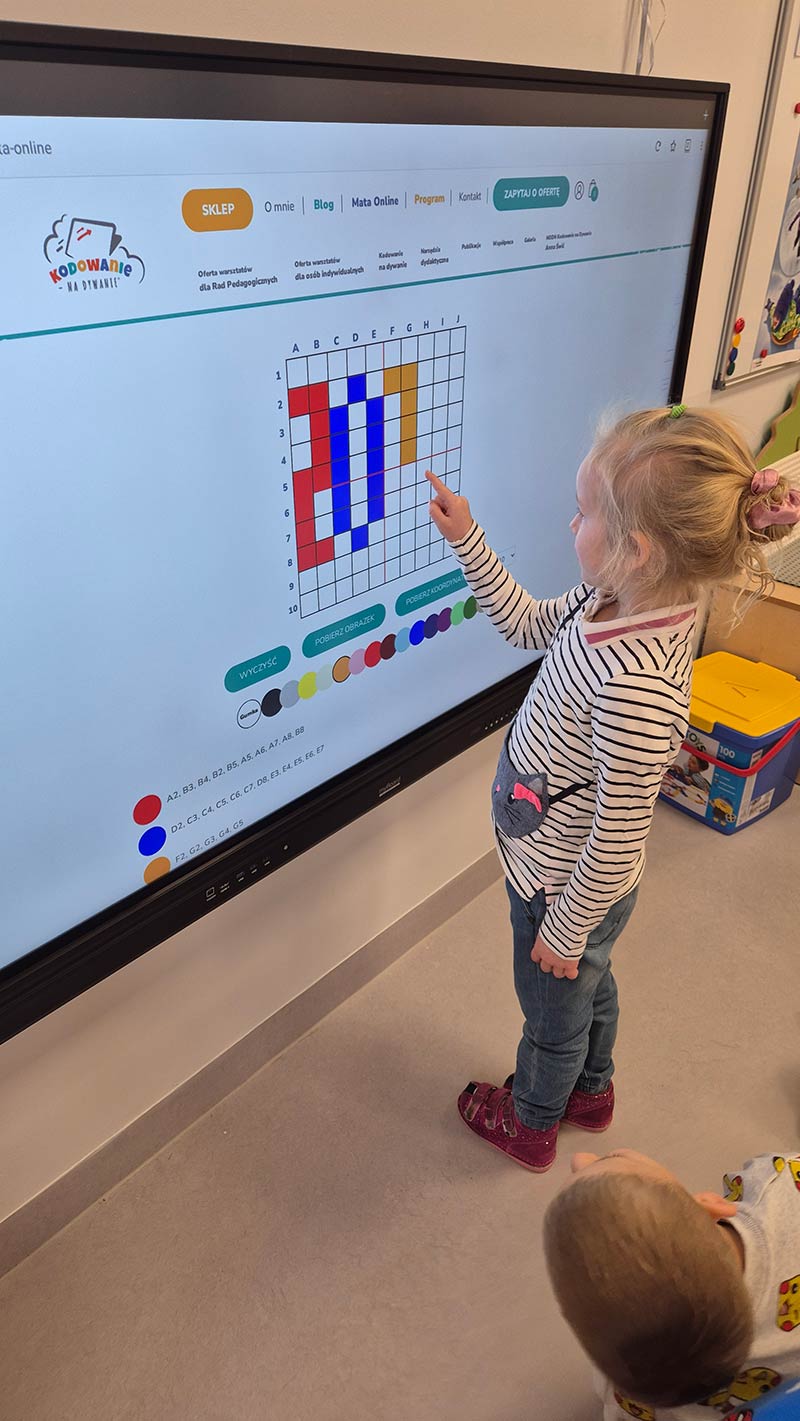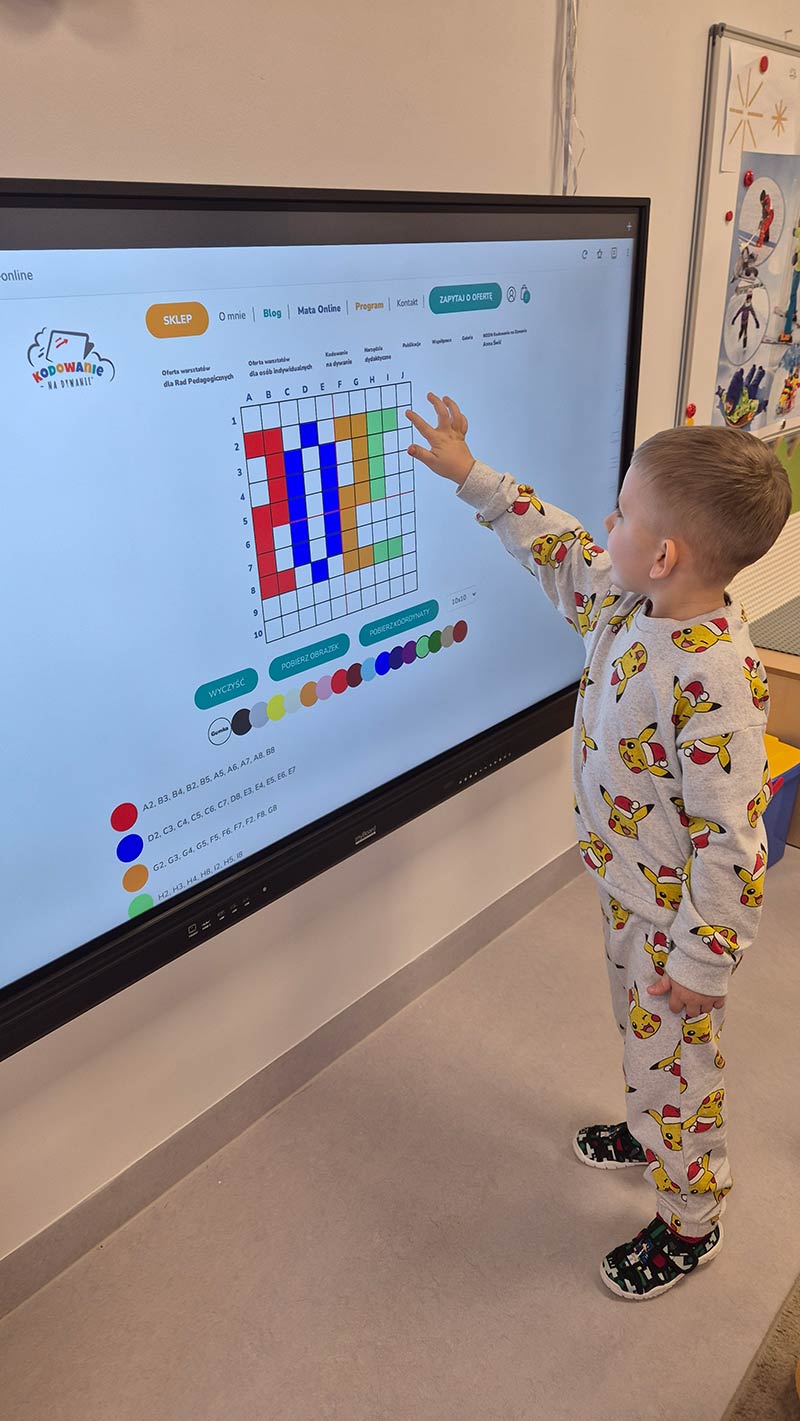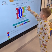 Dzieci z grupy Smerfy - uczymy dzieci programować z wykorzystaniem tablicy interaktywnej.