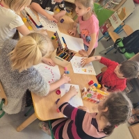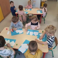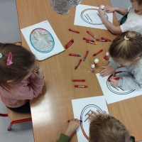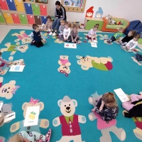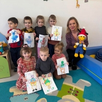 Grupa Pszczółek bierze udział w projekcie "Bajkowa wyprawa", którego celem jest zapoznanie dzieci z bajkami często pomijanymi. Dzieci uczą się słuchania bajek oraz podejmują próby znalezienia morału. Ostatnio poznawały bajkę o Czerwonym Kapturku, oraz wykonały ciekawe zadanie - stworzyły sylwety Czerwonego Kapturka. To była świetna zabawa.