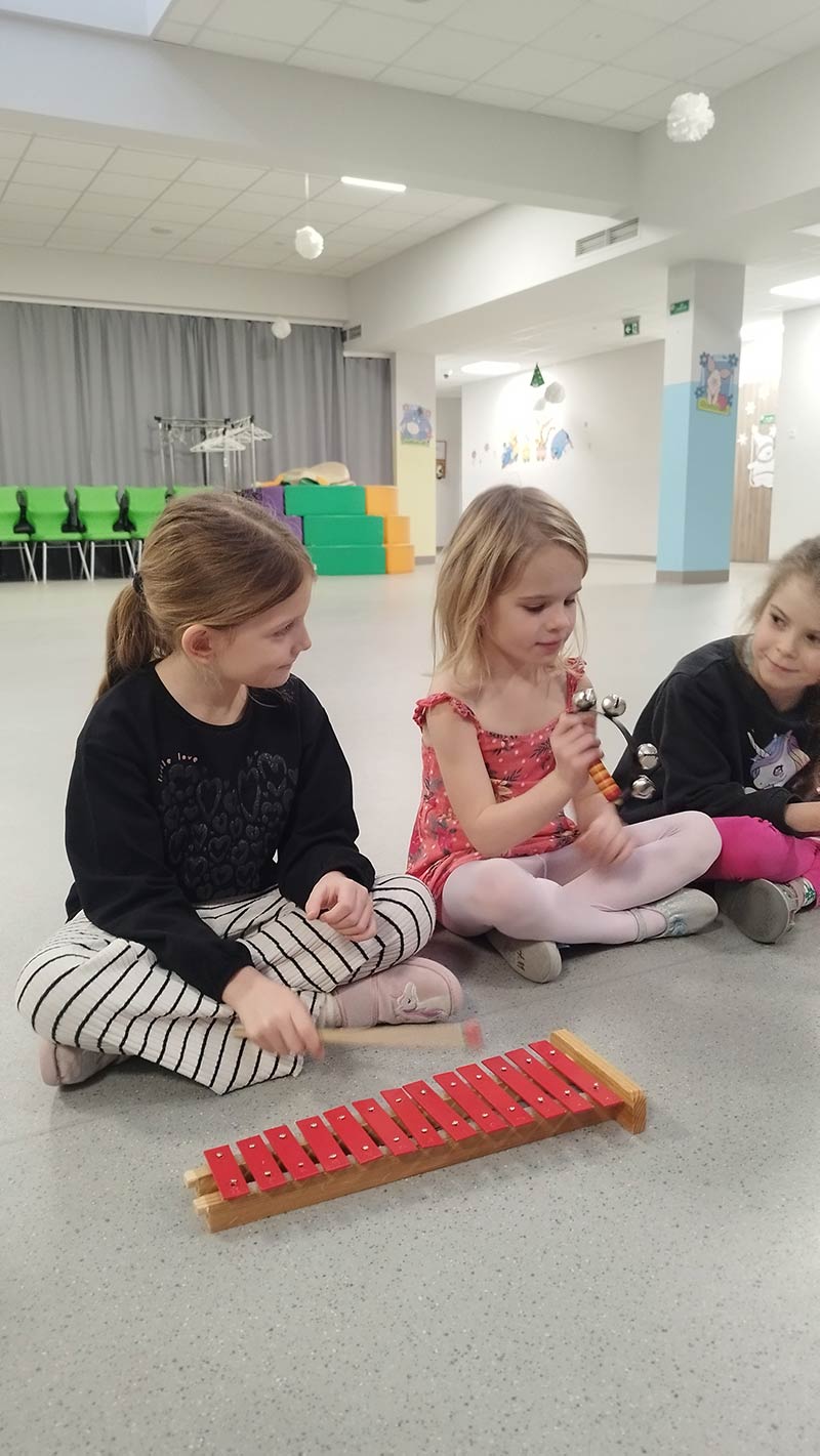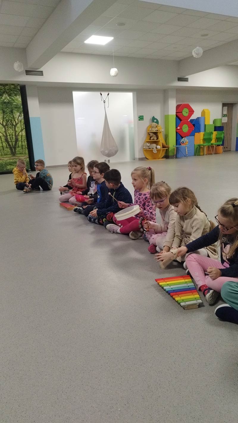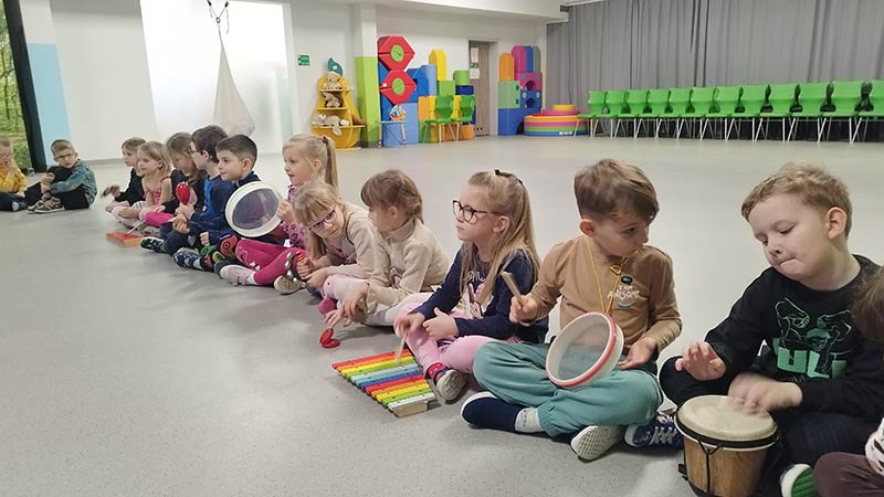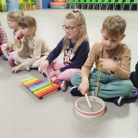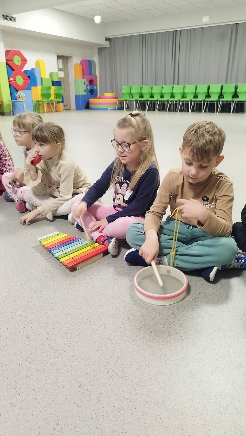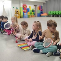 Zajęcia rytmiczne w grupie "Krasnoludków" z wykorzystaniem instrumentów muzycznych - umuzykalnienie.