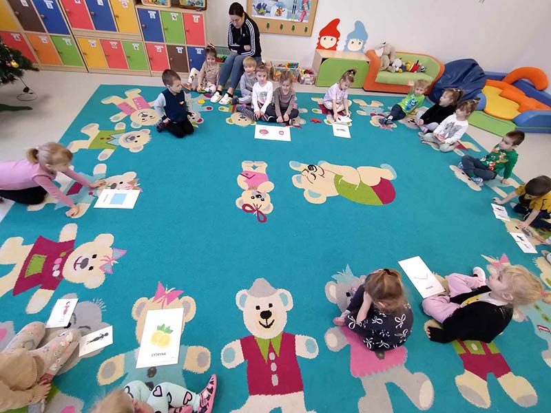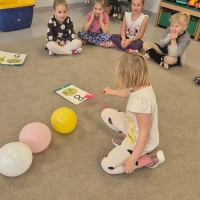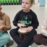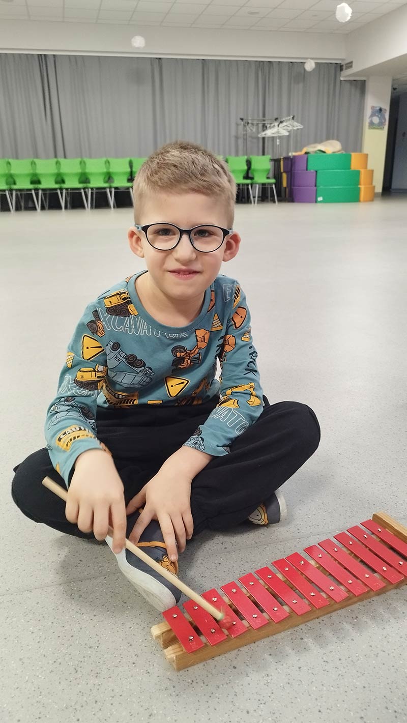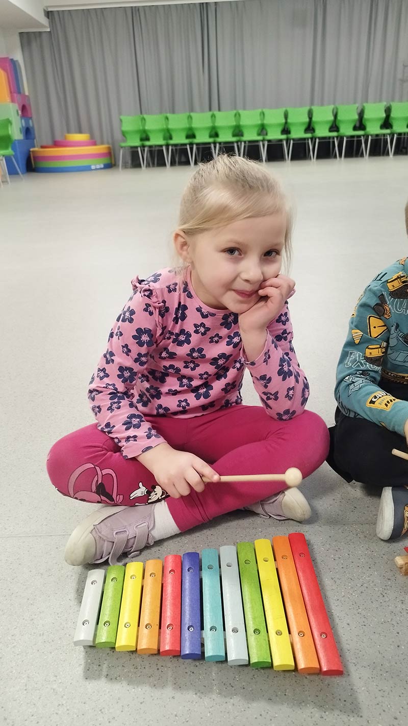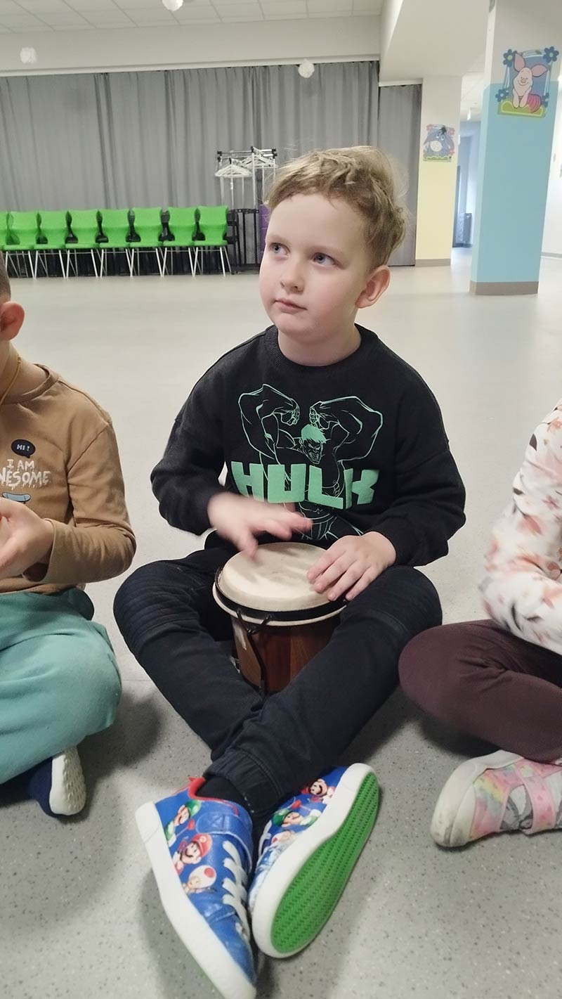 Zajęcia rytmiczne w grupie "Krasnoludków" z wykorzystaniem instrumentów muzycznych - umuzykalnienie.