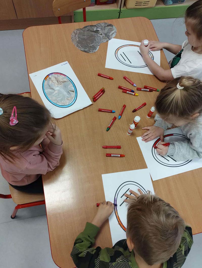 Okres przedszkolny jest czasem, w którym zaczyna się kształtować u dzieci umiejętność rozpoznawania i rozumienia uczuć i emocji. Lustrzane twarze mogą stanowić pomoc terapeutyczną w oswajaniu trudnych emocji, dlatego dzieci z grupy „Pszczółki” tworzyły własne lusterka, w którym zawsze mogą się przeglądać.
