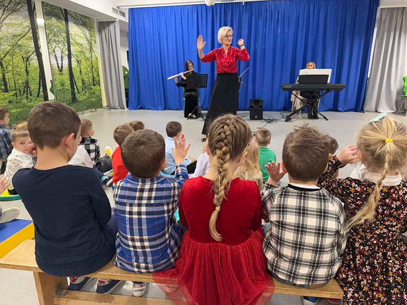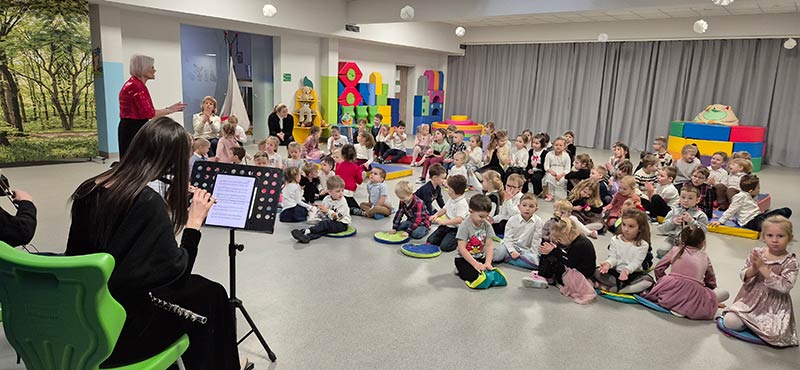 Przedszkolaki mogły podziwiać wspaniałe instrumenty muzyczne: flet poprzeczny, skrzypce, pianino, instrumenty klawiszowe.