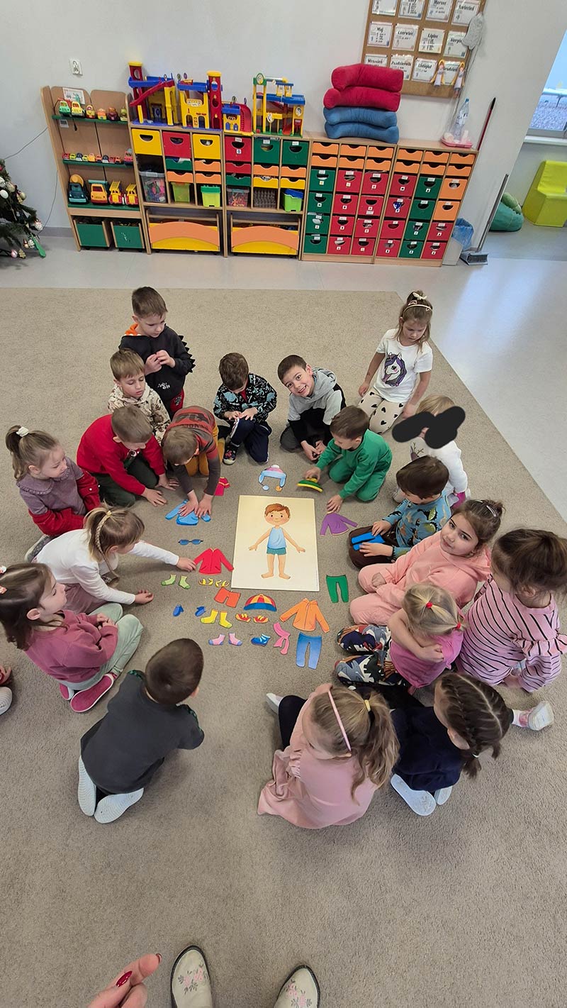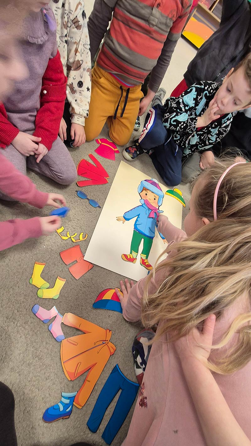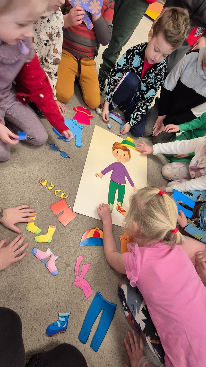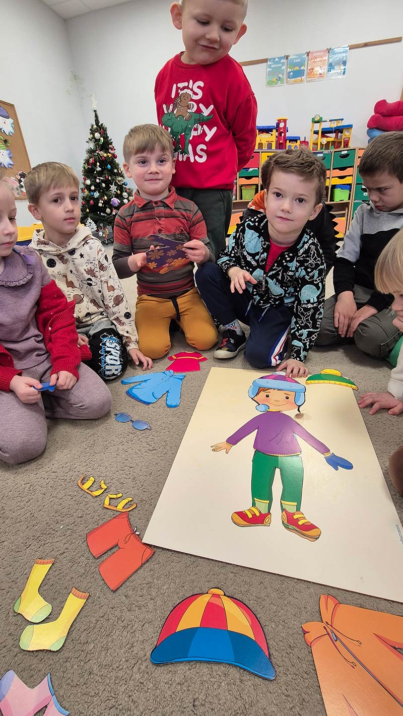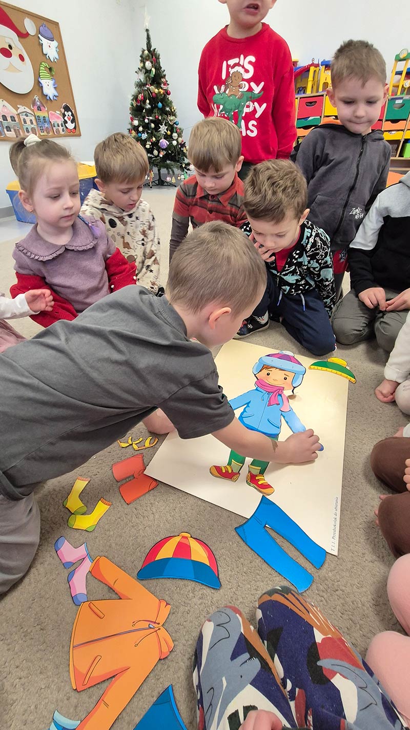 My się zimy nie boimy .... Grupa Smerfów wie jak dobrać odpowiednie ubranie do pogody. Nauka poprzez zabawę.