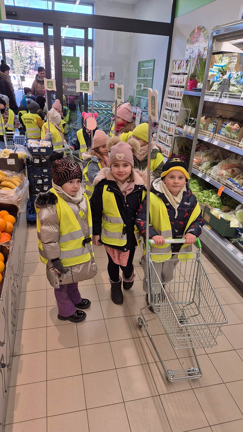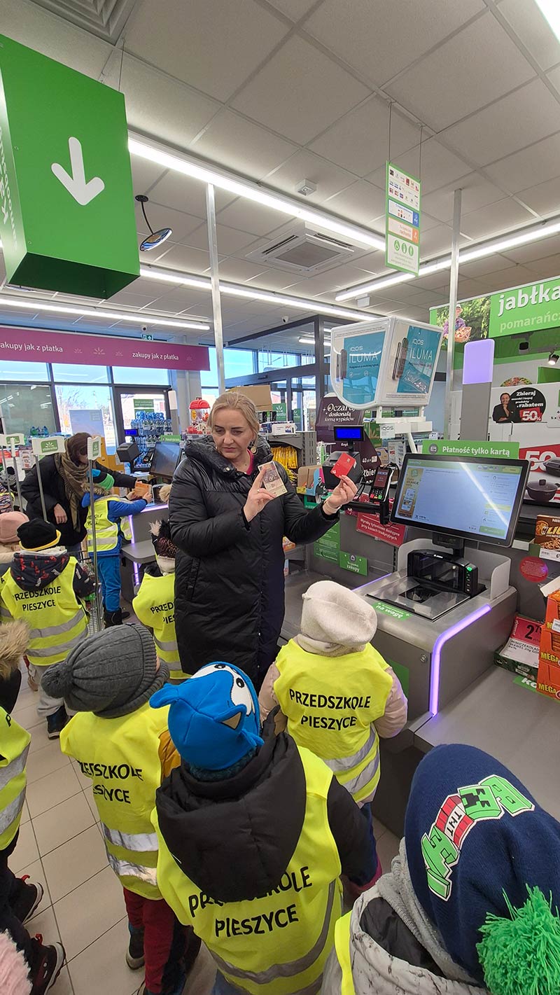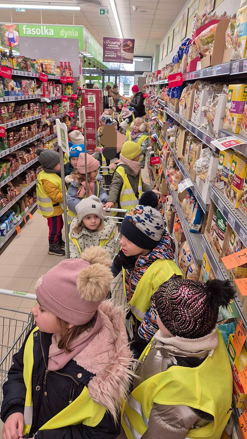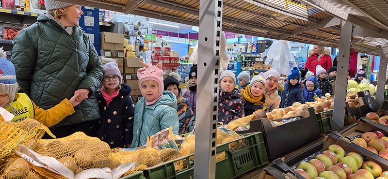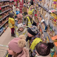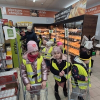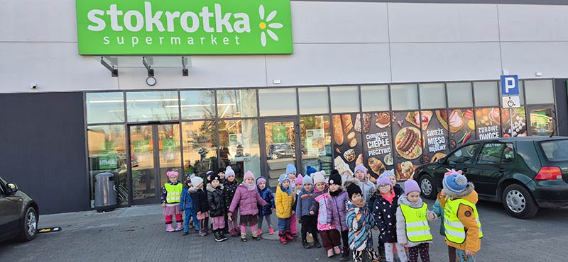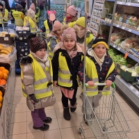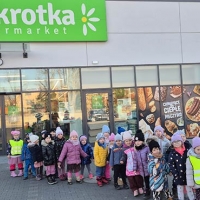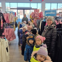 Dzieci z grupy Jeżyki i Motylki wybrały się na spacer do pobliskich sklepów - realizyjna programu Mrówka Złotówka.