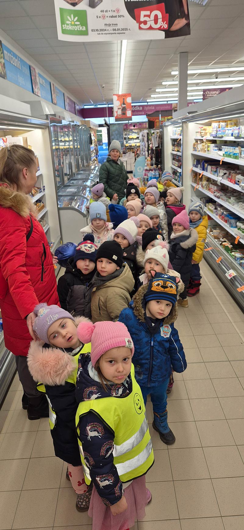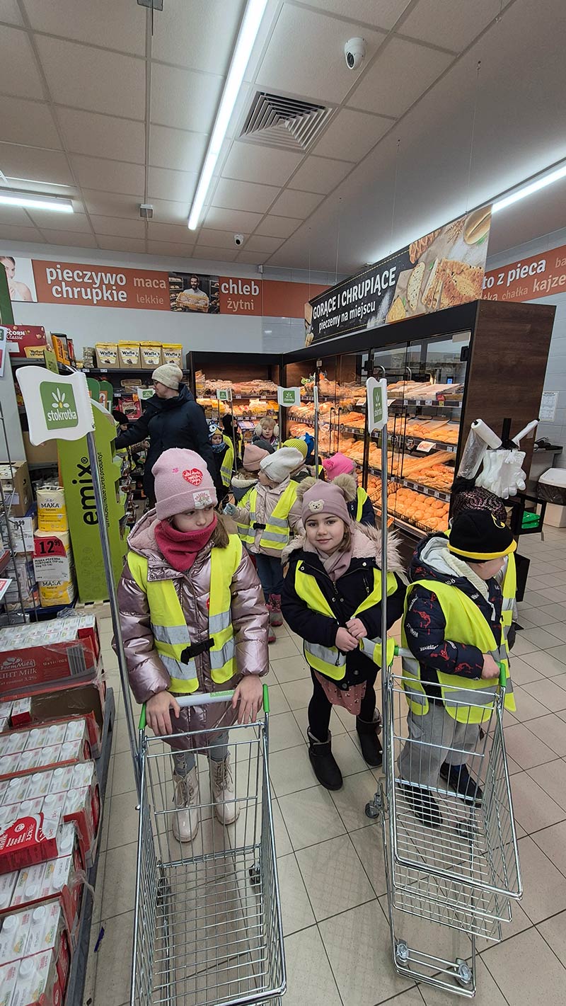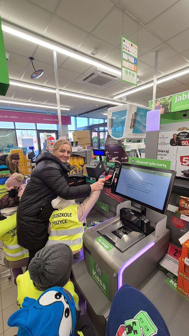 Dzieci z grupy Jeżyki i Motylki wybrały się na spacer do pobliskich sklepów - realizyjna programu Mrówka Złotówka.