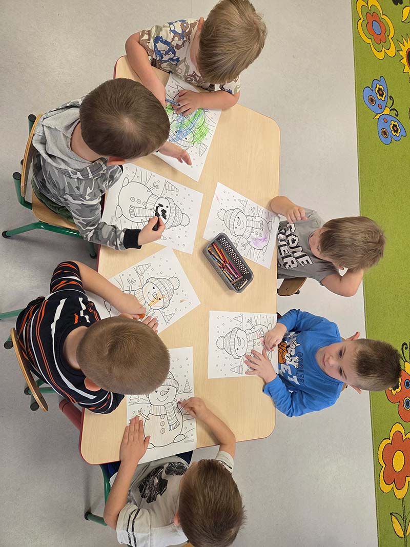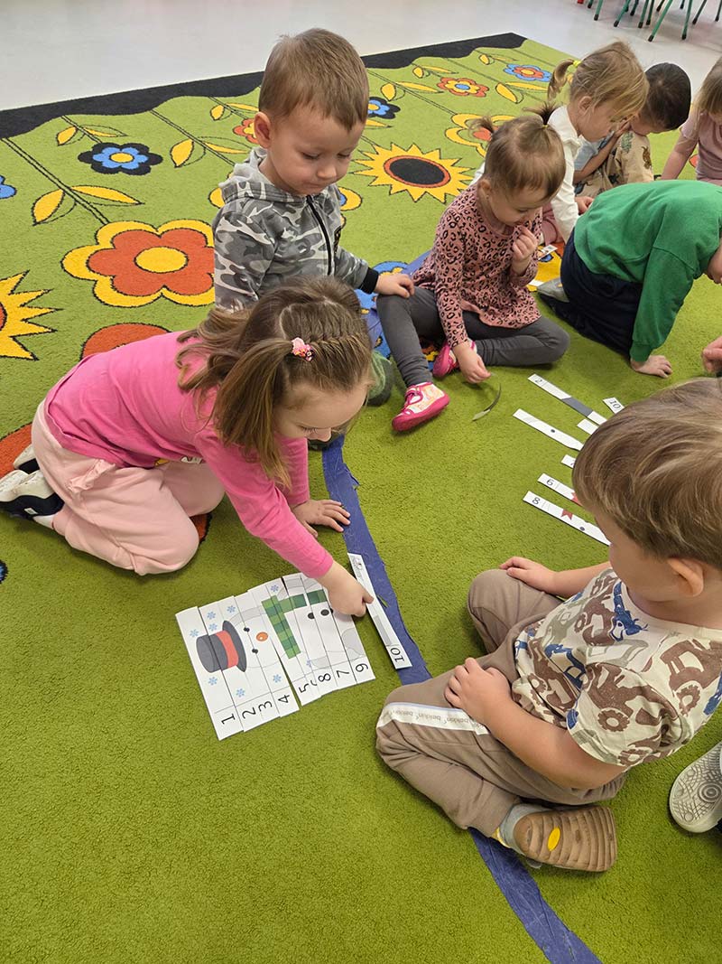 Podczas zajęć dzieci wysłuchały opowiadania „Za dużo zimowych zabaw”, następnie opowiedziały za co można polubić zimę, a także dlaczego odpoczynek jest ważny – nawet po najlepszej zabawie.Nie zabrakło radości i śmiechu podczas tematycznych zabaw ruchowych. Na zakończenie dzieci układały puzzle z zimowymi zabawami oraz kolorowały obrazek z bałwanem.