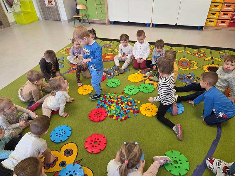 Duże klocki piankowe w przedszkolu to doskonałe narzędzie wspierające rozwój ruchowy, kreatywność i współpracę poprzez budowanie bezpiecznych, wielkoformatowych konstrukcji. Lekkie elementy umożliwiają Krasnoludkom tworzenie zamków, labiryntów czy torów przeszkód, ucząc planowania, logicznego myślenia oraz kolorów i kształtów.