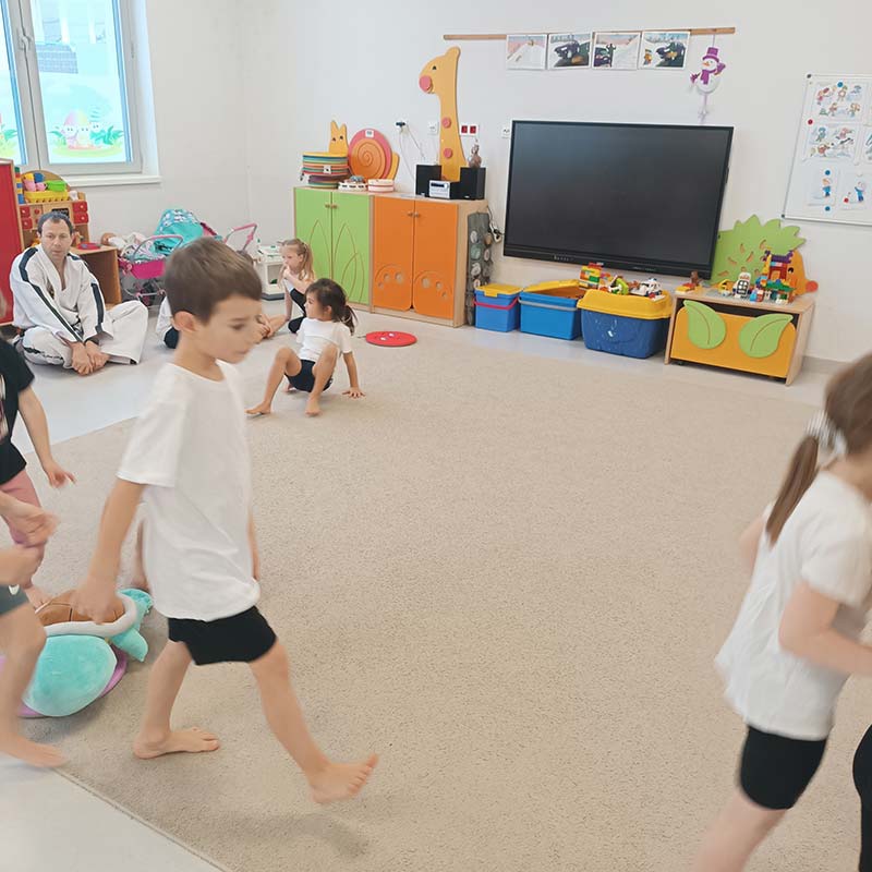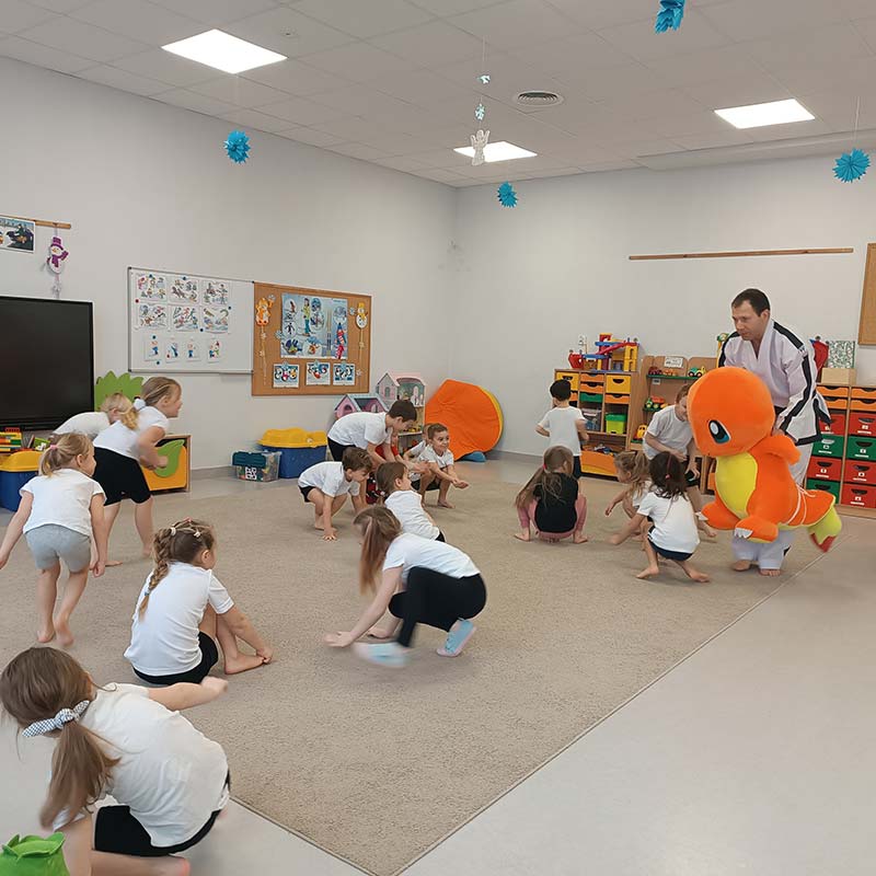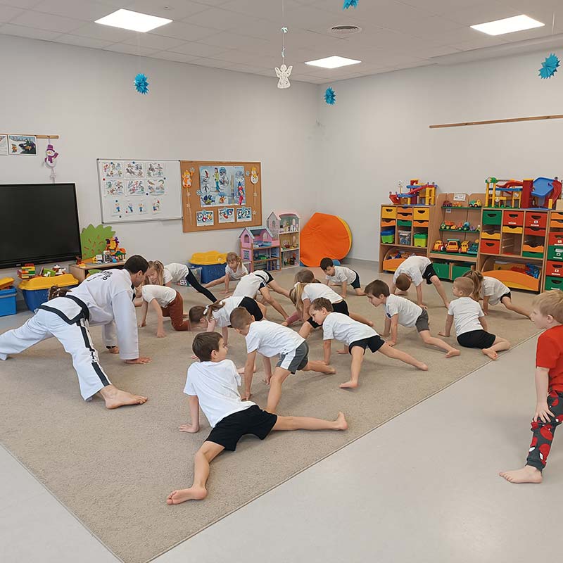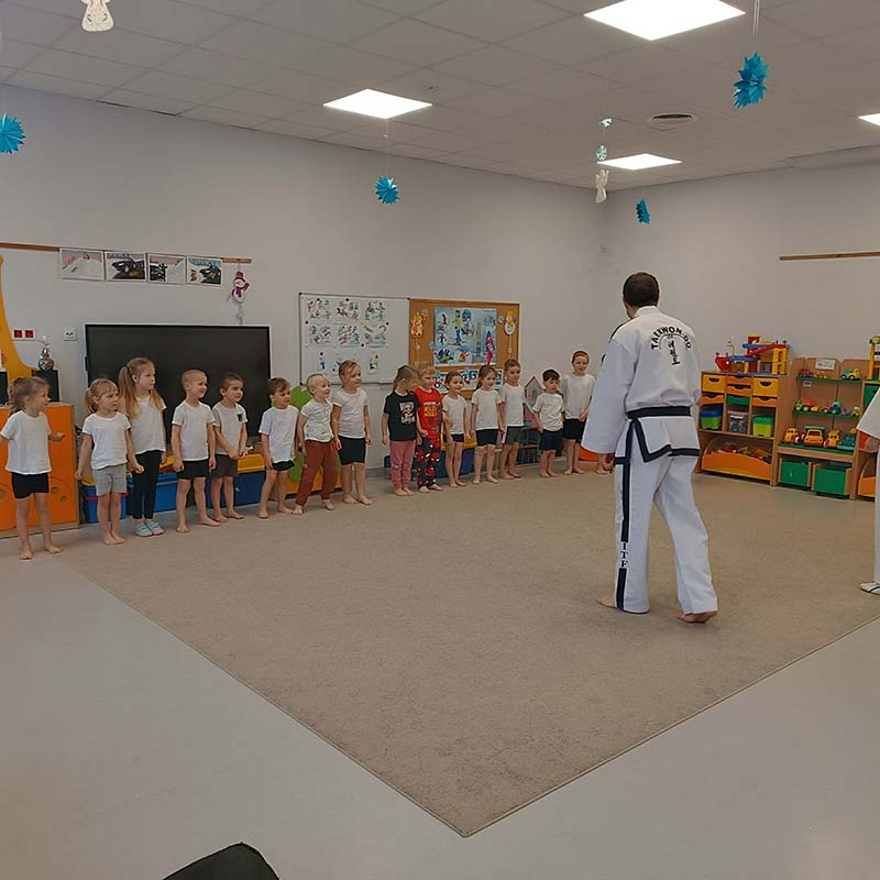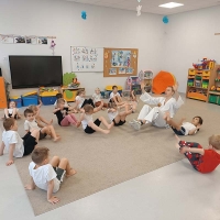 Zajęcia ruchowe z trenerami Taekwon-do w grupie Motylków.