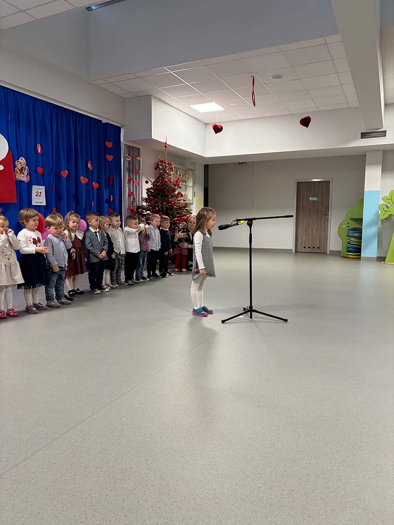 Podczas wydarzenia dzieci zaprezentowały przygotowany z wielkim zaangażowaniem krótki program artystyczny, pełen piosenek i wierszy. Występ wzbudził wiele radości i wzruszeń wśród zgromadzonej publiczności, a uśmiechy na twarzach seniorów były najlepszym dowodem na to, jak ważne i potrzebne są takie spotkania międzypokoleniowe.