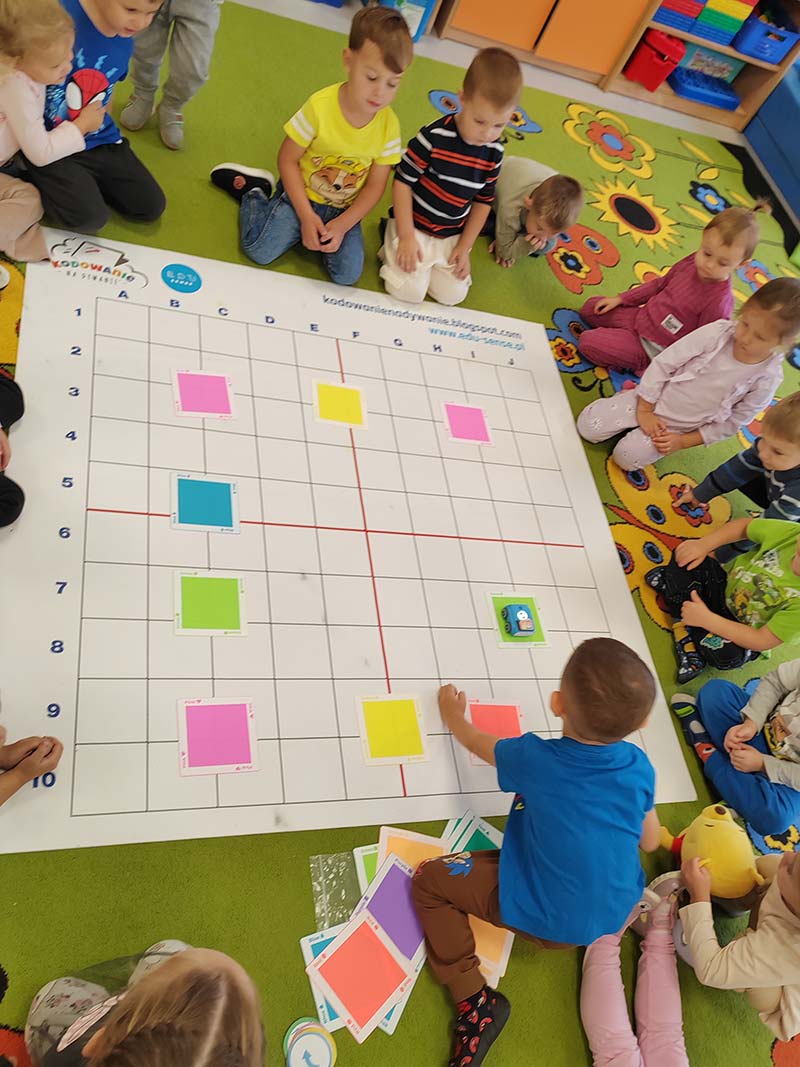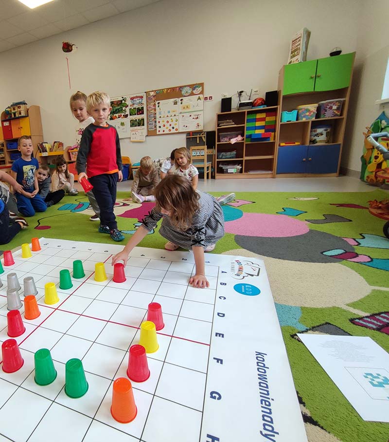 Kodowanie na dywanie rozwija umiejętności logicznego myślenia w czasie świetnej zabawy.