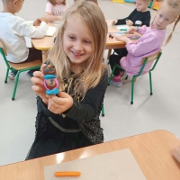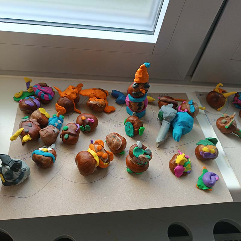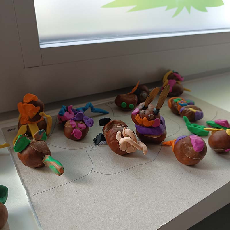 Podczas dzisiejszych zajęć Motylki wykonały kasztanowe zabawki do kącika przyrodniczego.