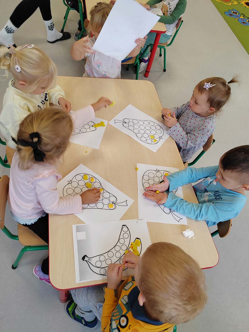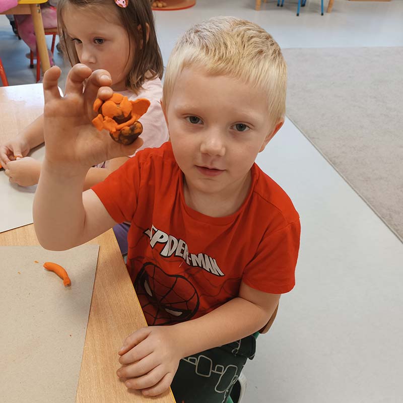 Lepienie z masy solnej jesiennych owoców w grupie Krasnale.