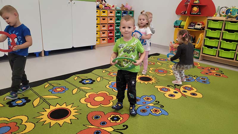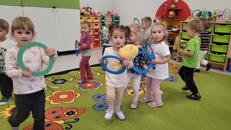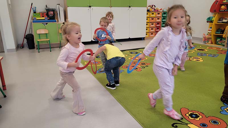 Zabawy ruchowe w grupie Biedronki to co najmłodsi lubią najbardziej.