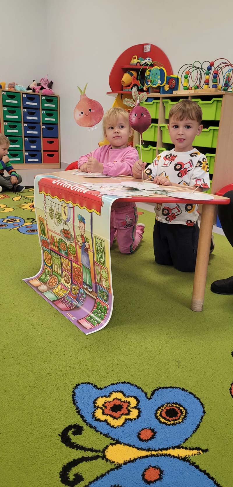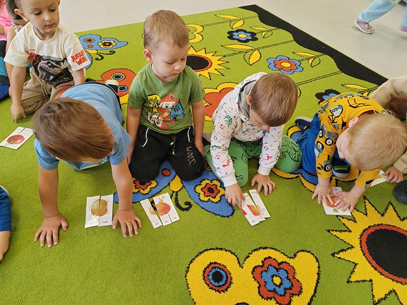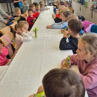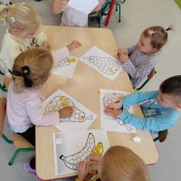 Biedronki poznawały owoce i warzywa różnymi zmysłami, wzrokiem, dotykiem, węchem oraz smakiem bawiąc się przy tym wyśmienicie i wykonując różne zadania.