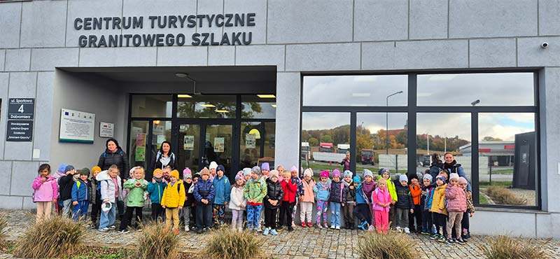 Dzieci z grupy Jeżyki i Motylki wybrały się na wycieczkę do Dobromierza Centrum turystyczne "Granitowy Szlak".