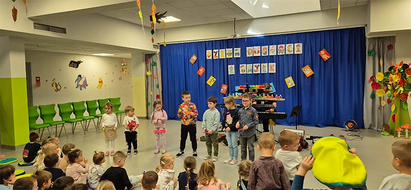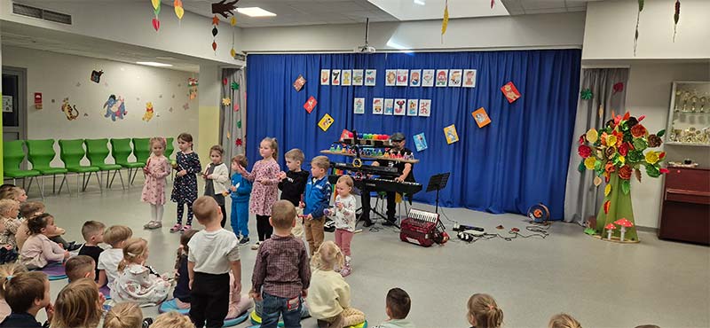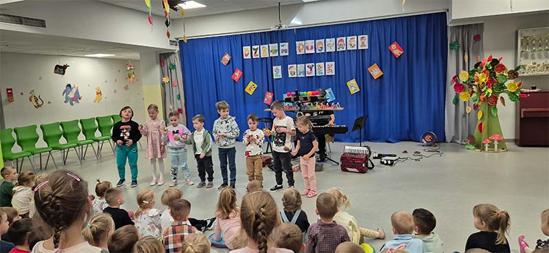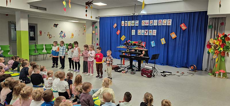 „Człowiek orkiestra w przedszkolu” to muzyczne wydarzenie, które wprowadziło dzieci w świat zabawy i muzyki. Koncert polegał na angażowaniu dzieci w różnorodne aktywności muzyczne. Takie wydarzenie jest świetną okazją do rozwijania zainteresowań muzycznych już od najmłodszych lat oraz do integrowania grupy przedszkolnej poprzez wspólne muzykowanie i zabawę.