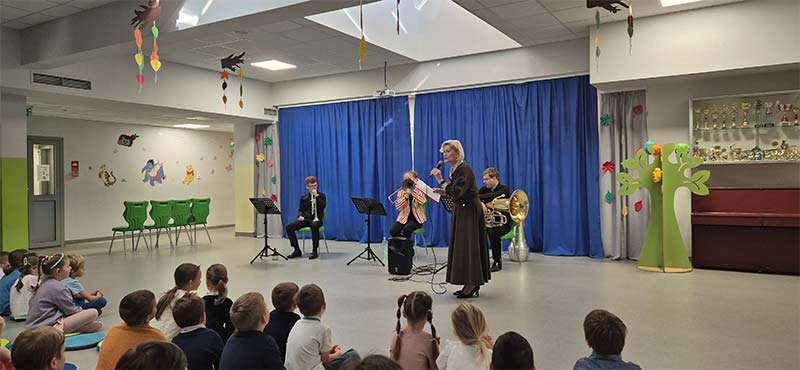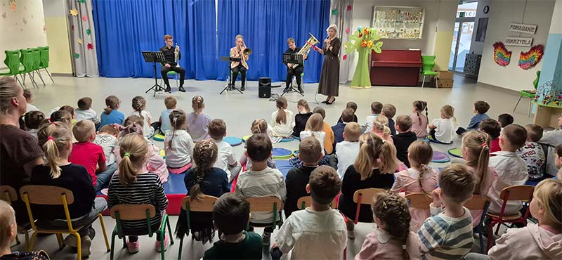 Koncert Filharmonii Sudeckiej pod tytułem "Czary pełne dźwięków" z udziałem instrumentów dętych w przedszkolu to wspaniała inicjatywa, która pozwala dzieciom na poznanie muzyki na żywo oraz zapoznanie się z różnymi instrumentami dętymi. Takie wydarzenia są często organizowane, aby rozwijać muzyczne zainteresowania najmłodszych i wprowadzić ich w świat muzyki klasycznej.