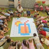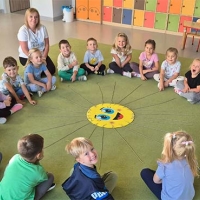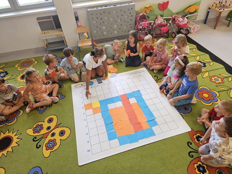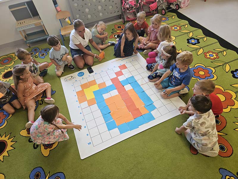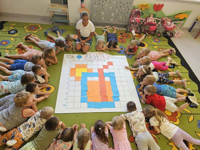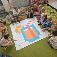 Kodowanie na dywanie w grupie Jeżyki - wakacyjny soczek pomarańczowy.