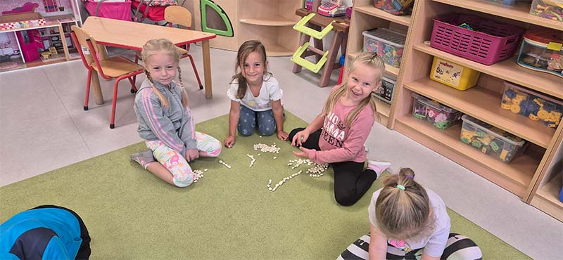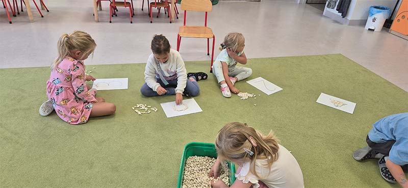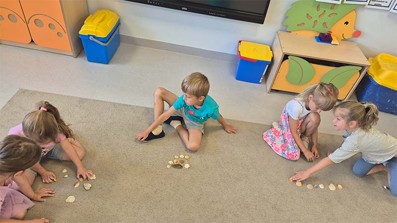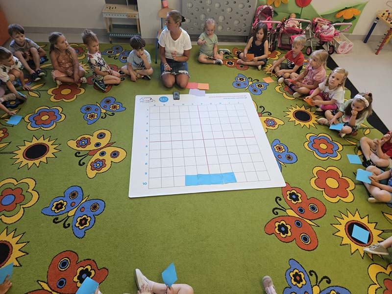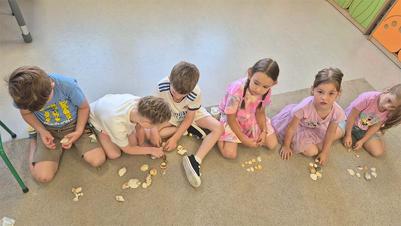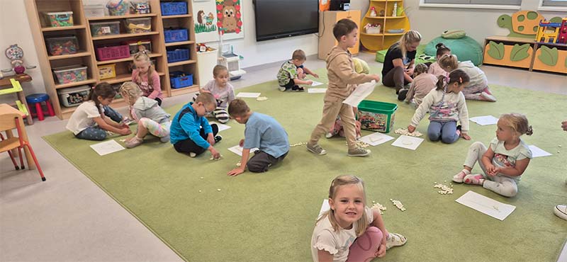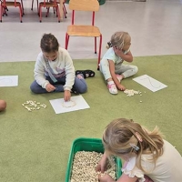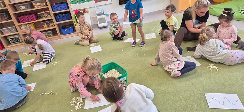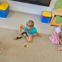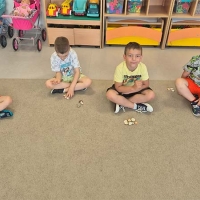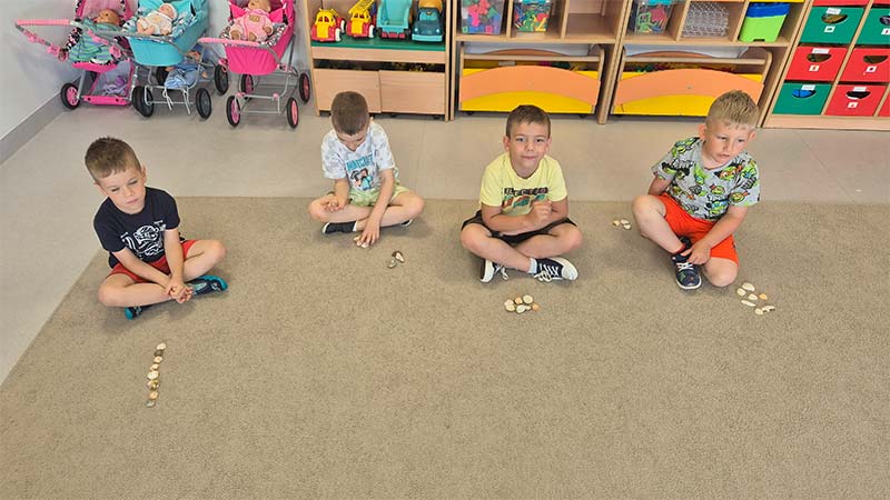 Zabawy matematyczne z muszelkami w grupie Smerfów.
