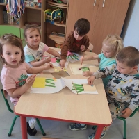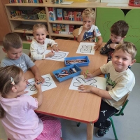Ćwiczenia motoryki małej w grupie Smerfów.