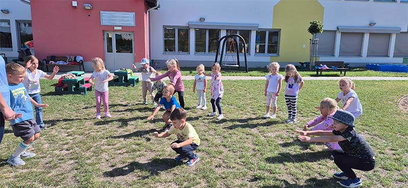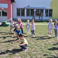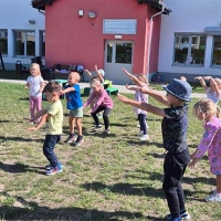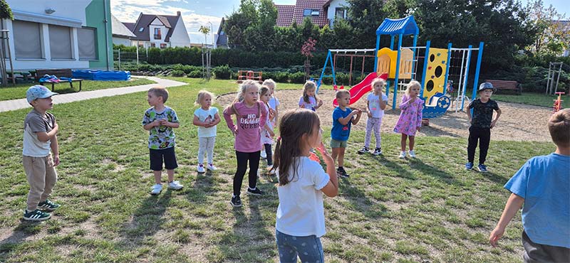 Zabawy ruchowe na świeżym powietrzu - dzieci z grupy Jeżyki.