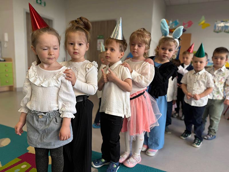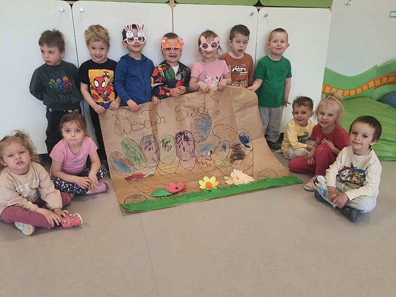 Wielkanocne przedstawienie w wykonaniu pięciolatków z grupy „Żabki” i „Smerfy” było prawdziwą ucztą dla ducha i serca! Dzieci zaprezentowały niezwykle radosny program, który poruszył zarówno pracowników jak i przedszkolaków.