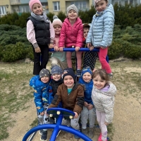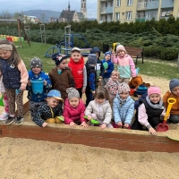 Dzieci z grupy "Pszczółki" korzystając z pięknej, wiosennej pogody, spędziły radosny czas w przedszkolnym ogrodzie.