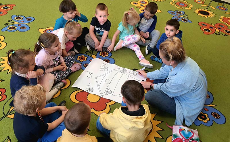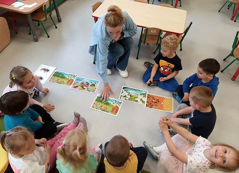 Dzieci z grupy,, Misie ,, aktywnie włączyły się w działania, których celem było budzenie świadomości na temat pożyteczności pszczół oraz pomoc w ich przetrwaniu .Wzbogaciły swoją wiedzę na temat życia pszczół .Uczestniczyły w zabawach ruchowych, tanecznych oraz plastycznych. Ten dzień był pełen wrażeń i radości.