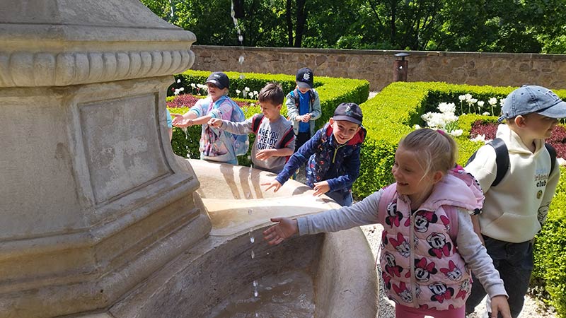 Po zwiedzaniu dzieci udały się do zamkowego parku, gdzie czekał na nie piknik i czas na wspólne zabawy na świeżym powietrzu. Radości było co niemiara – śmiech, śpiewy i wspólne zdjęcia stworzyły niezapomnianą atmosferę.