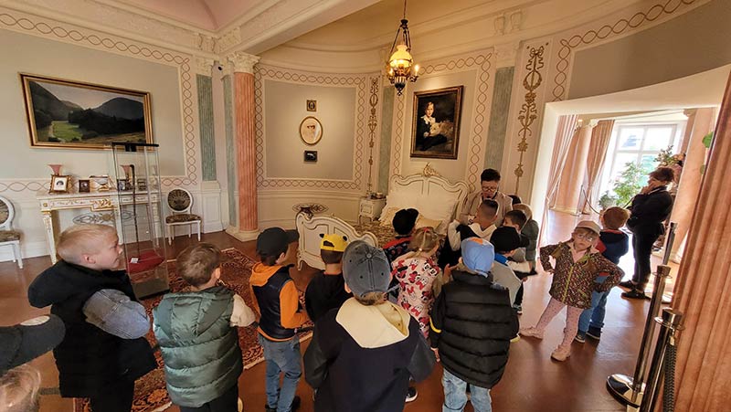 Na miejscu dzieci z zachwytem przyglądały się potężnym murom zamku i pięknie zdobionym salom. Przewodnik opowiadał w przystępny sposób o historii zamku, tajemniczych tunelach i księżnej Daisy, której postać szczególnie zaciekawiła małych słuchaczy. Przedszkolaki z dużym zaangażowaniem słuchały opowieści, zadawały pytania i podziwiały wnętrza pełne zamkowych skarbów.