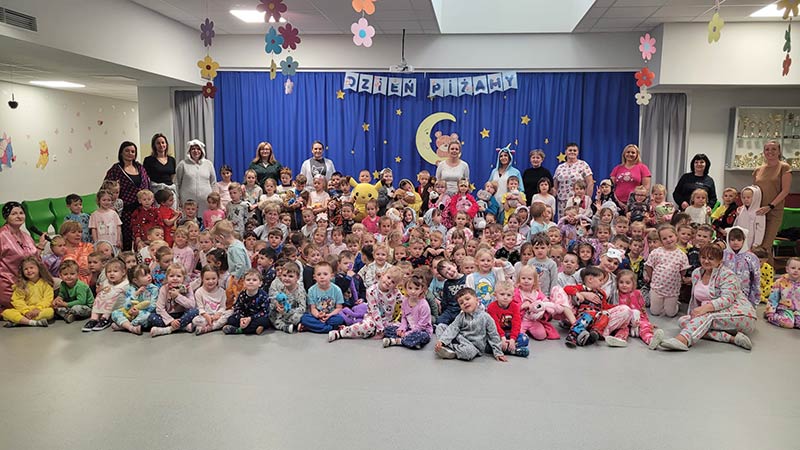 Tego dnia dzieci, nauczyciele oraz pracownicy przedszkola przyszli ubrani w piżamy, szlafroki i kapcie – nie po to, by spać, lecz by okazać solidarność z małymi pacjentami, dla których piżama jest codziennym strojem, a nie jedynie nocnym ubraniem. W ten symboliczny sposób chcieliśmy zwrócić uwagę na trudną sytuację dzieci przewlekle chorych oraz zebrać środki na ich leczenie i rehabilitację.