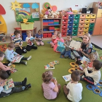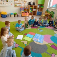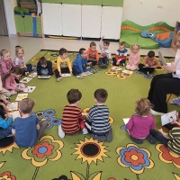 Misie uczestniczyły w zajęciach plastycznych pt. ,,Moja książka,, . Poznały również zasady prawidłowego obchodzenia się z książkami. Zapoznały się z pojęciami,, księgarnia, biblioteka, czytelnia,,.