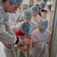 Dzieci z grupy MOTYLKI i JEŻYKI wybrały się na wycieczkę do Serowarni w Lutomierzu mogły zrobić swój własny ser, spróbować różnych smaków sera,